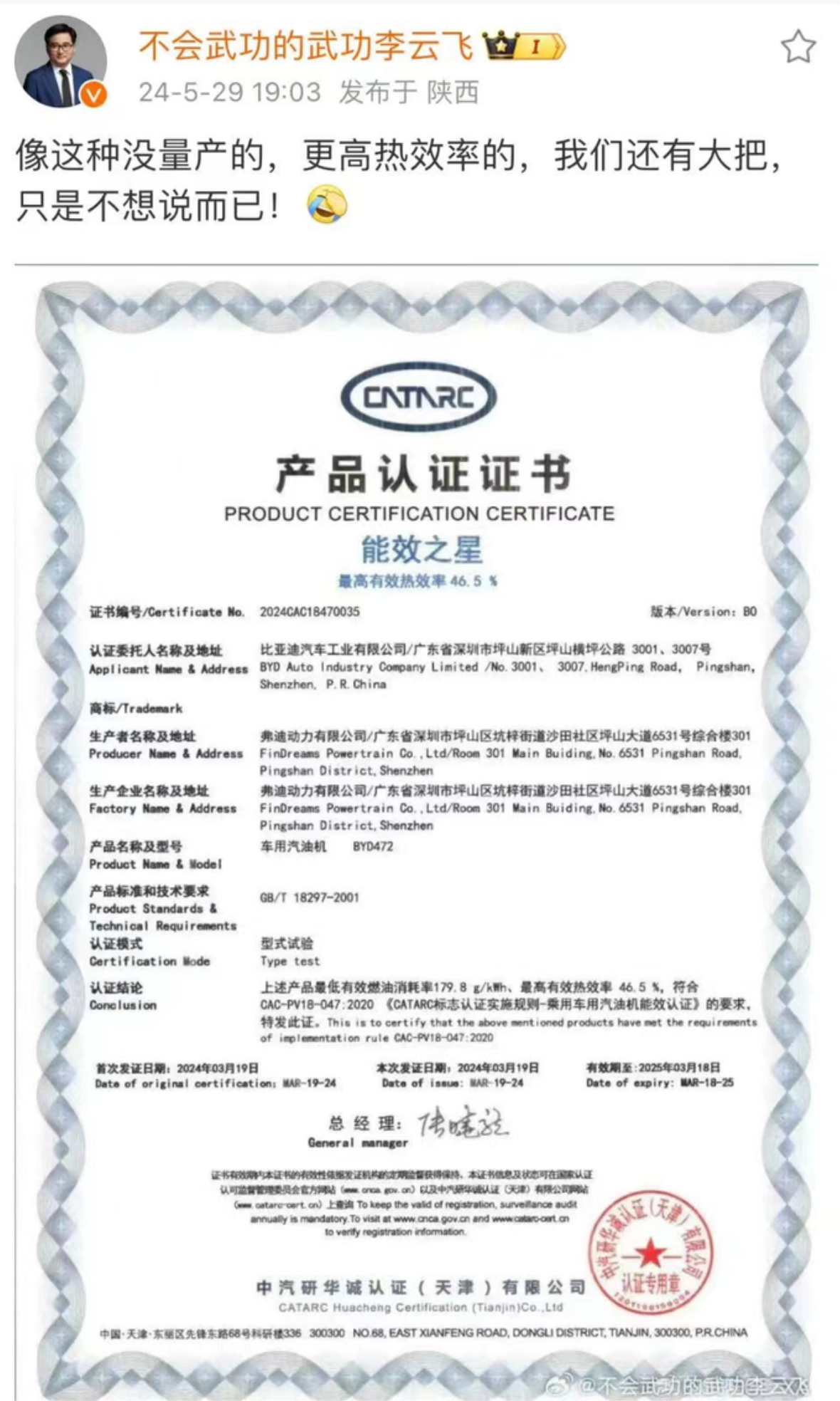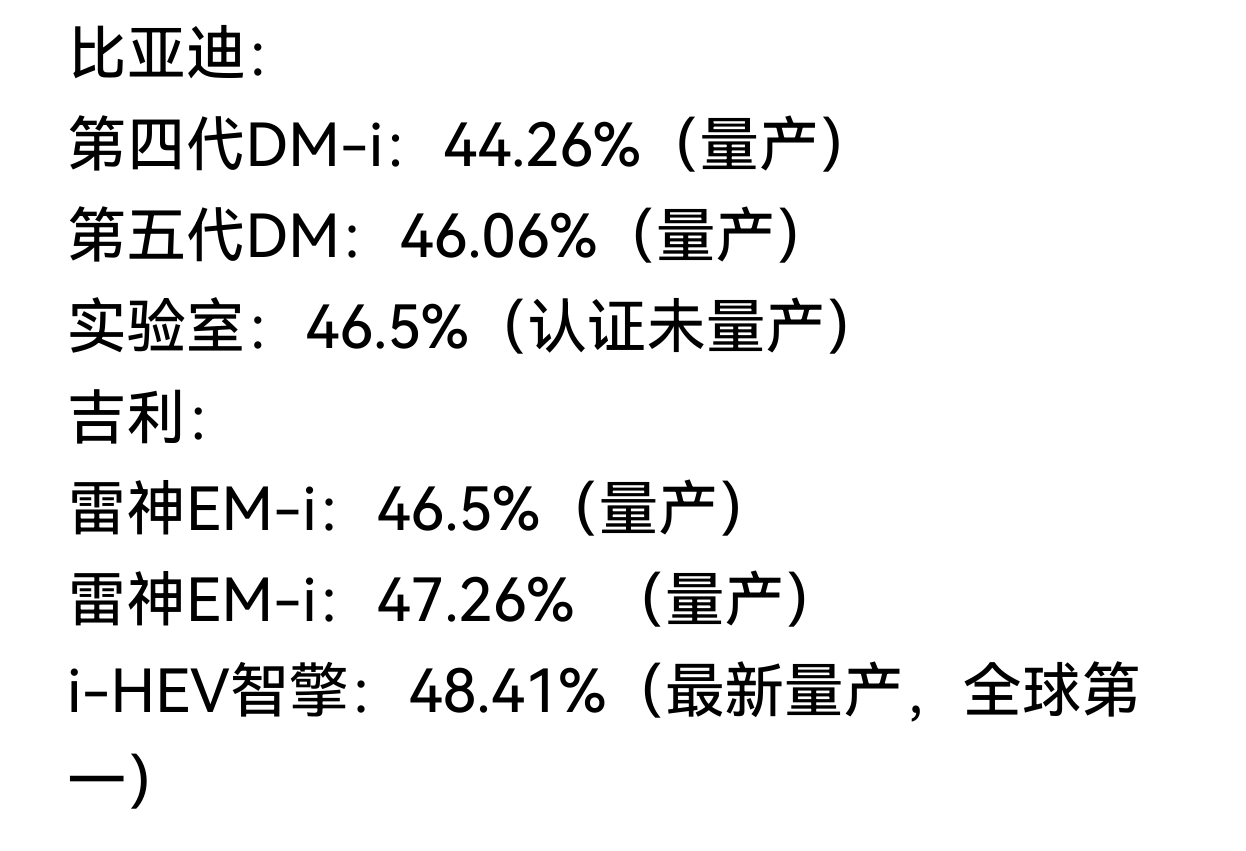 还有人记得2024年吉利和比亚迪关于发动机“热效率之争”吗?此事成为2024年自主混动技术的标志性事件,核心是两家高管在微博公开互怼,围绕发动机“46%+热效率”和“量产/非量产”展开。