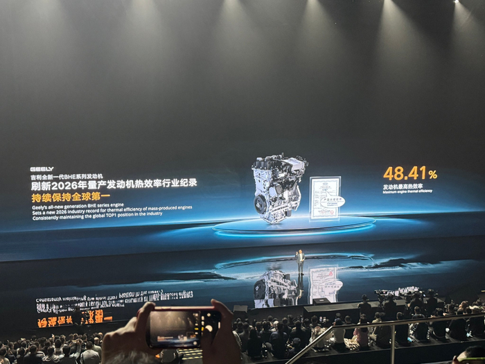 48.41% 是吉利 i-HEV 智擎混动 专用发动机的最高热效率(2026年4月13日最新发布,中汽中心认证),目前全球量产混动发动机第一。现在全球真正跑在路上、能买到的车里,吉利这套 48.41% 就是热效率天花板。