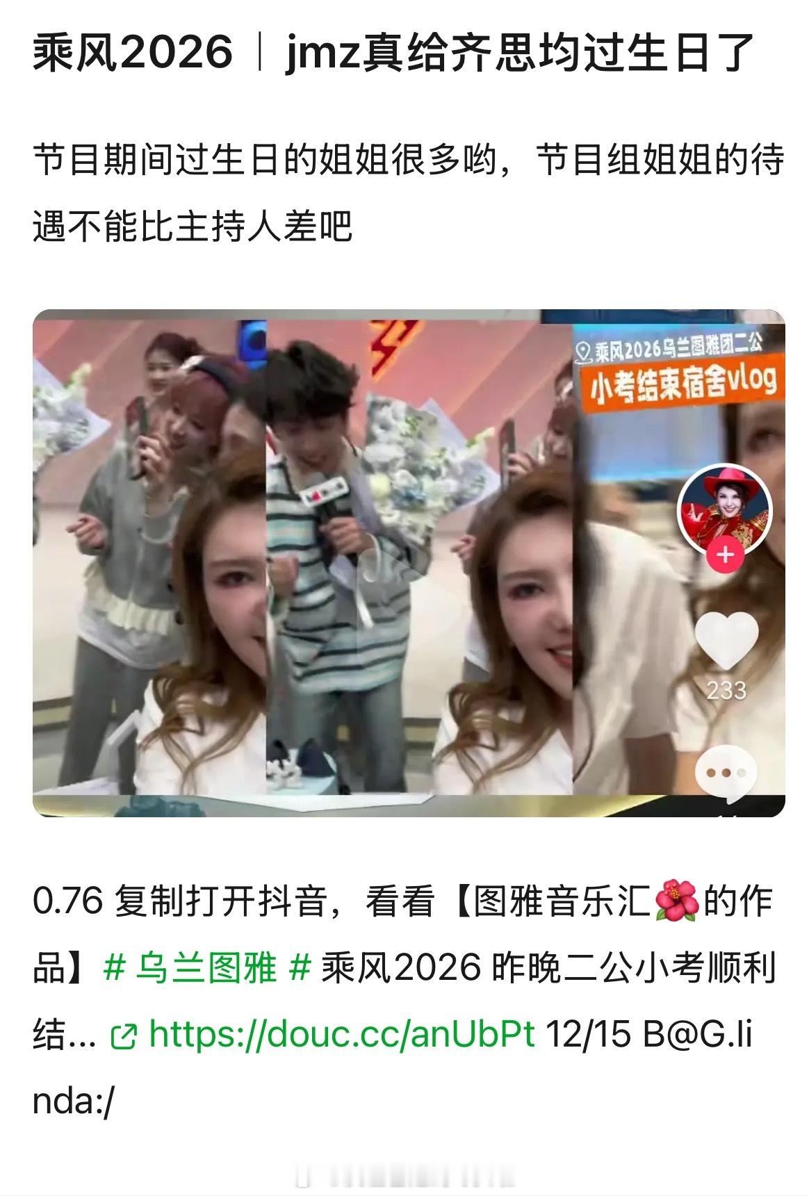 浪姐节目组被审判,因为二公小考后给主持人齐思钧过生日,网友觉得大半夜不睡觉让姐姐
