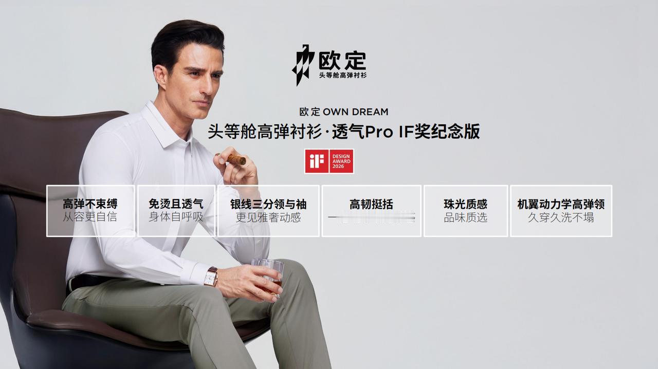 早在六年前,欧定头等舱高弹衬衫就开始用AI解决线上买衬衫“不合身”的难题。很多人网购衬衫,尺码对了但肩膀不合适,或者领口合适袖子却长了。欧定的AI定制系统积累了200万商务人士的体型数据。用户只需在手机上输入几个基础数据,系统就能算出33个人体部位和120个制衣参数,生成“一人一版”的专属版型。