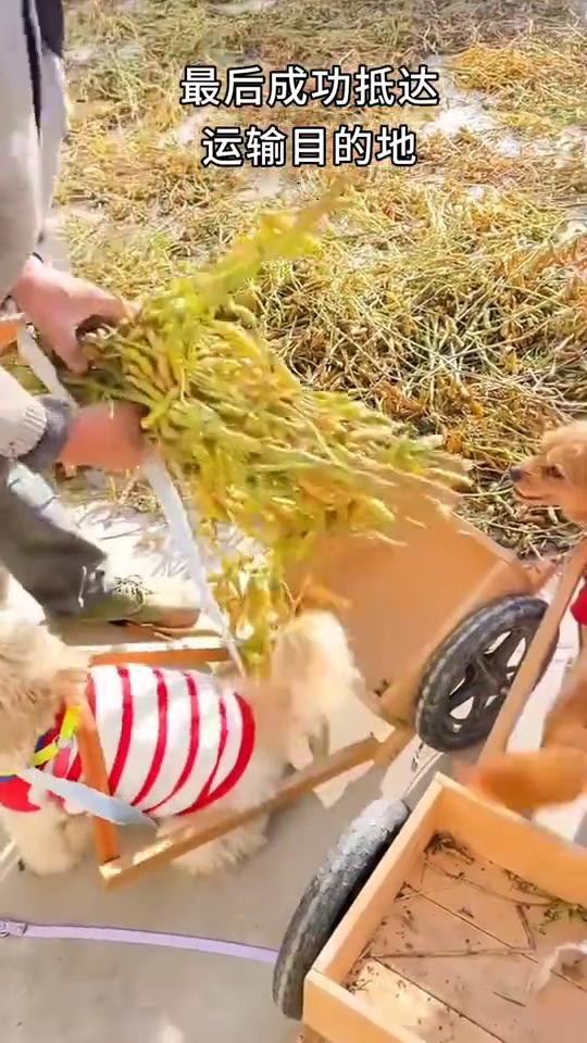 这个狗狗生产运输队浩浩荡荡运力惊人,只要家里需要运输的它们都义不容辞。
