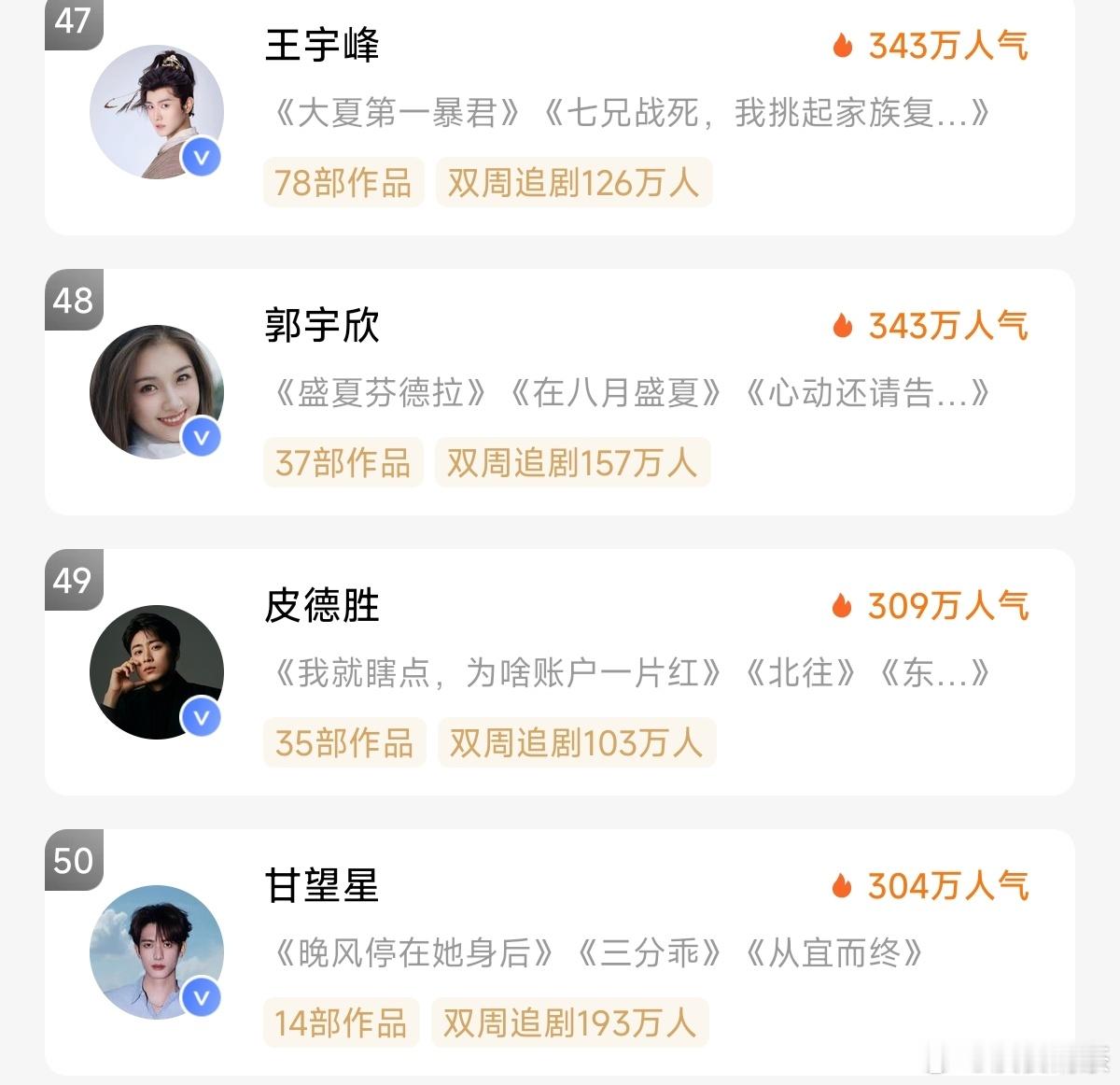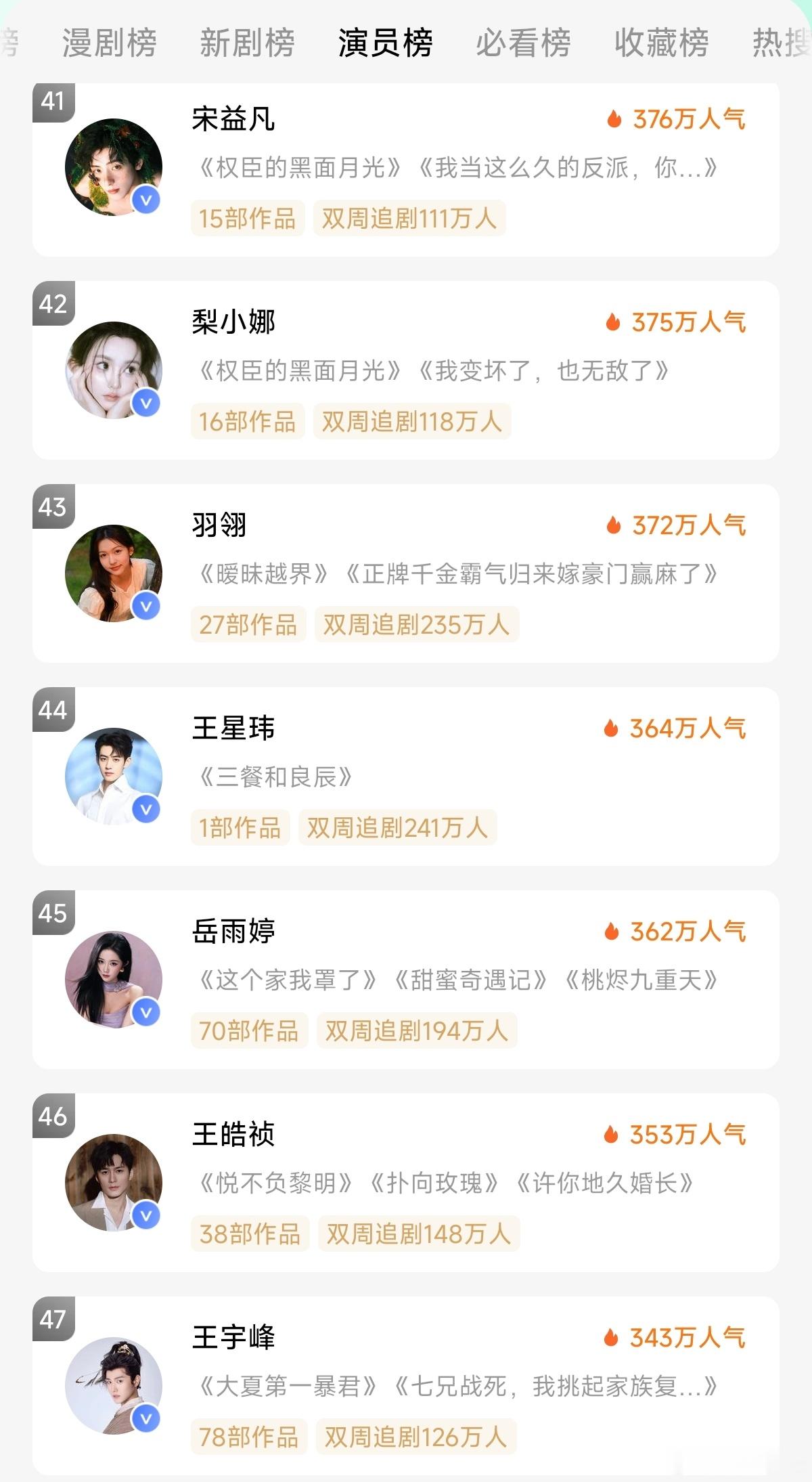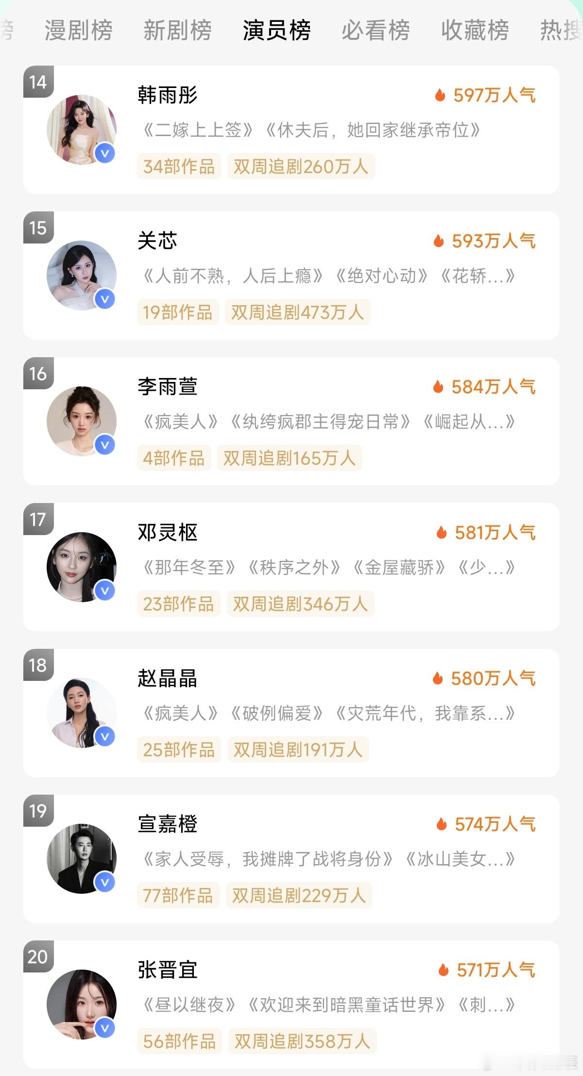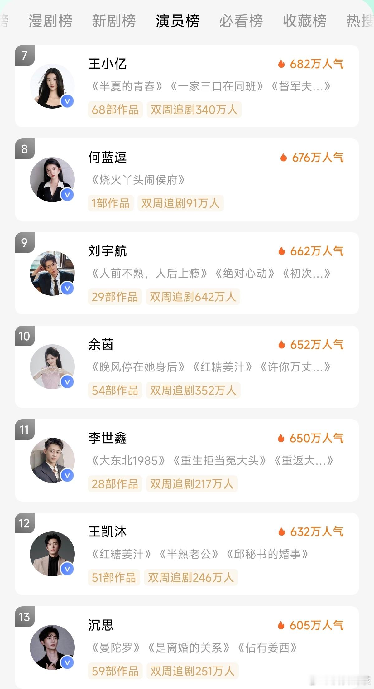 红果演员榜,变动太大了。张翅现在第一