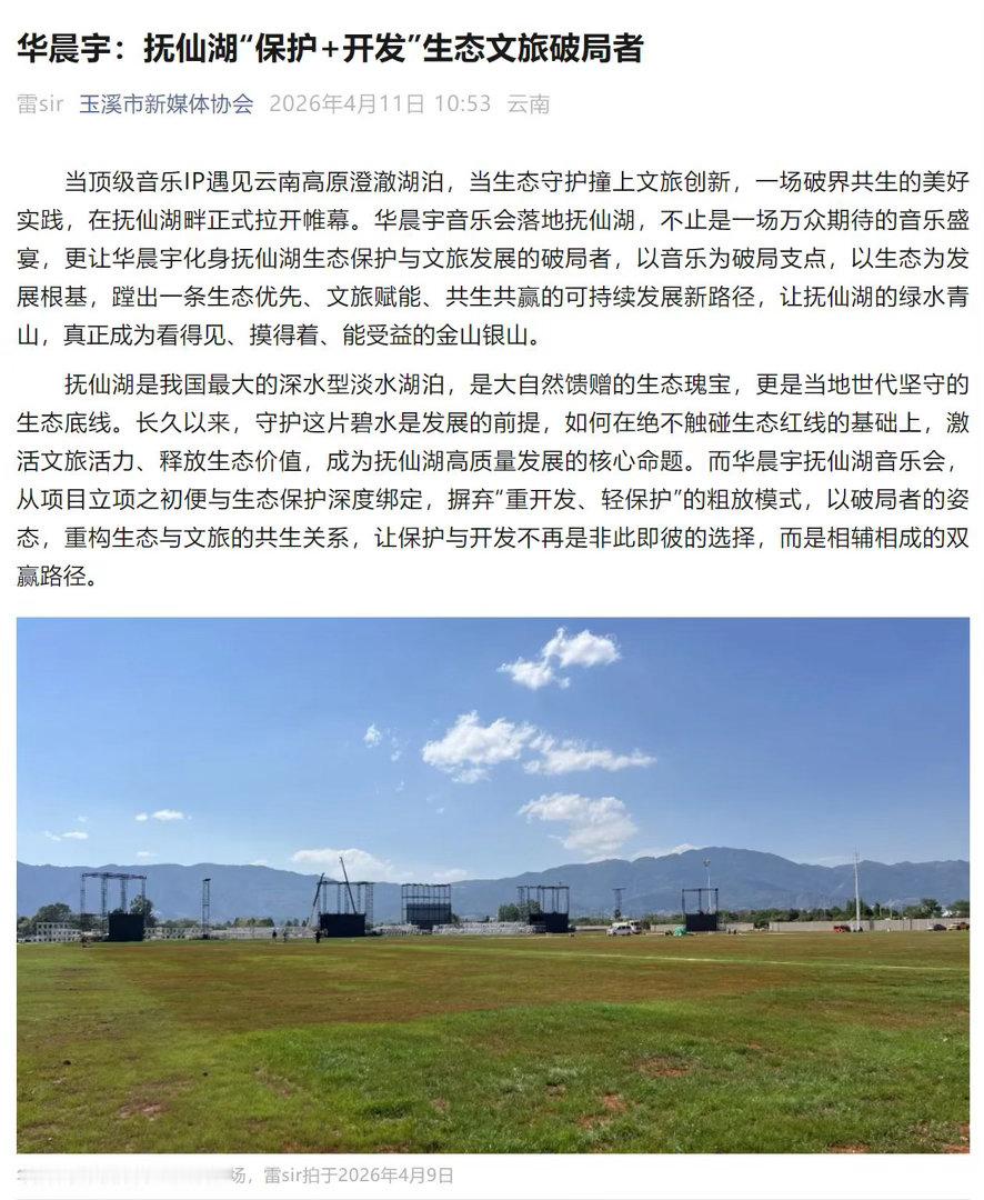 华晨宇演唱会生态文旅破局者 火星演唱会乐园2.0五一登陆抚仙湖音乐秀场,不只是单纯开一场音乐演出,从头到尾都在做环保、守护抚仙湖生态,每张门票还会捐钱做公益带动当地文旅,听歌赏美景真的太有意义了2026华晨宇火星演唱会