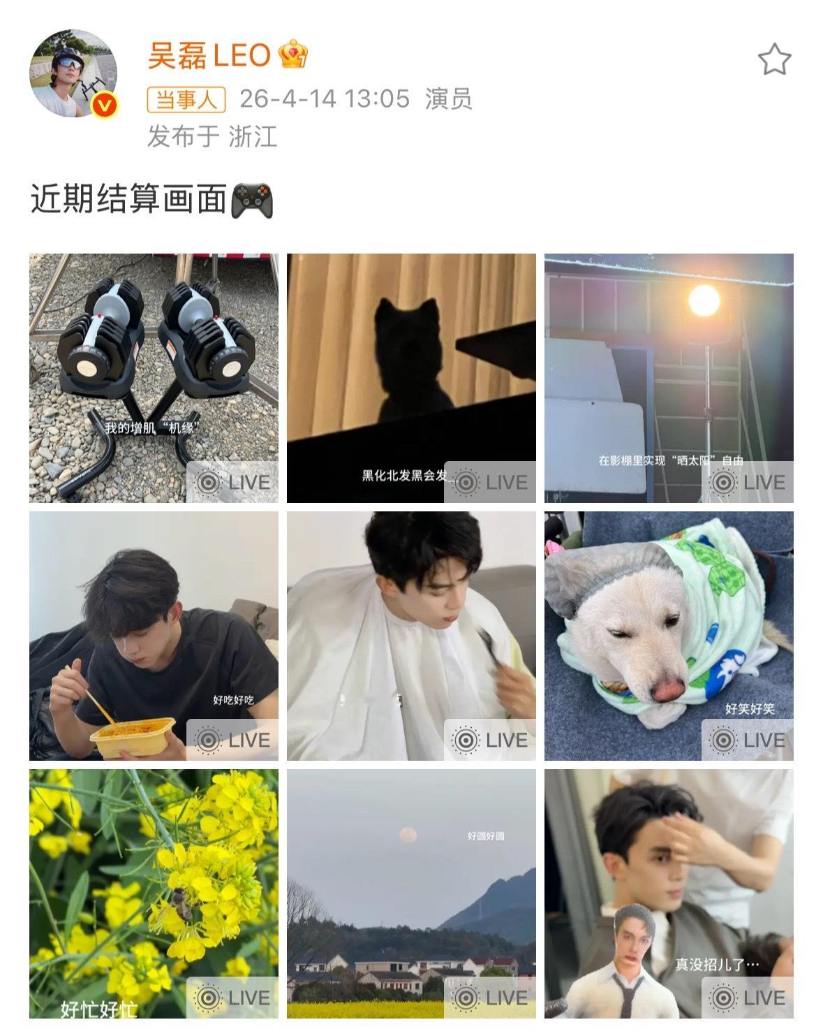 吴磊暴风吸入面条吴磊好活人感的日常 吴磊晒了9宫格live照,好有活人感的日常,增肌、吃饭、拍戏、小北,吴磊的生活简单又幸福吴磊