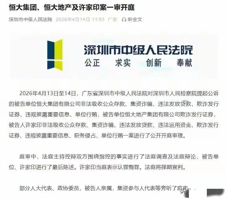 备受关注的恒大许家印案在深圳开庭审理!老许当庭表示认罪!这小子知道自己的处境,但是恒大的2.44万亿债务能不能化解又是一个难题!