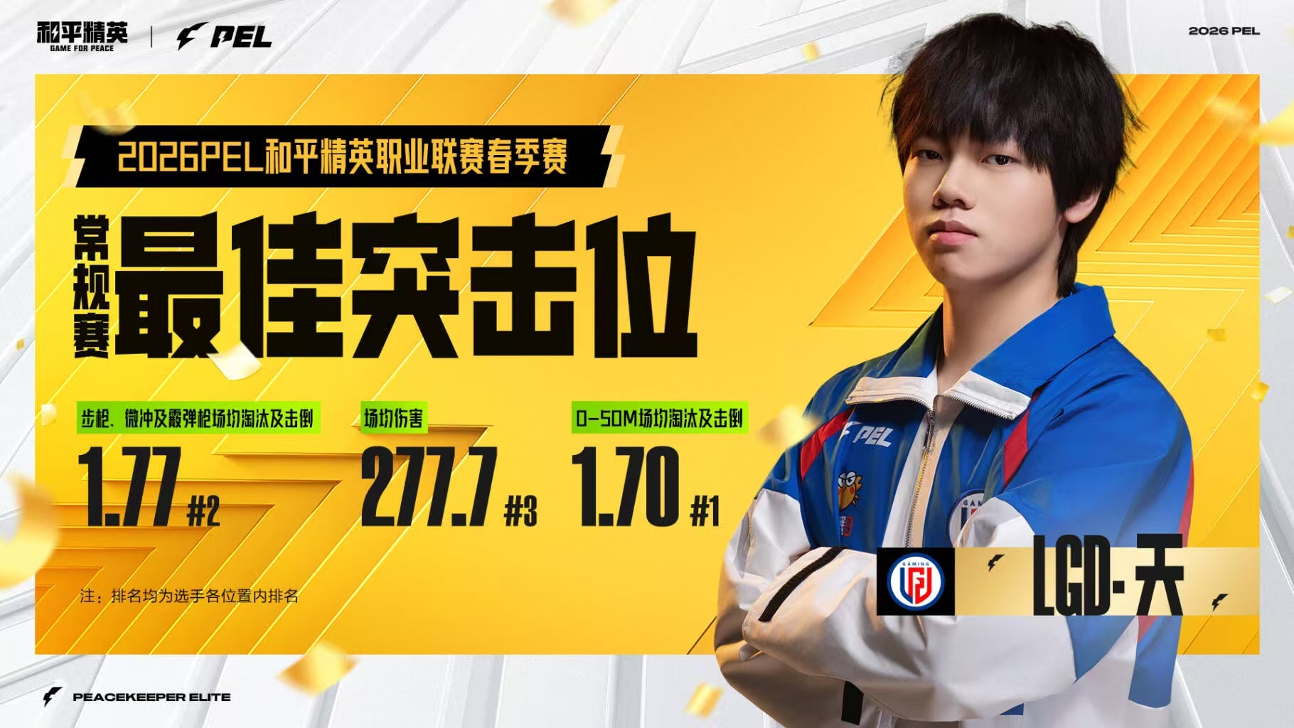 2026PEL春季常规赛最佳阵容LGD天常规赛最佳突击位 恭喜天当选2026PEL春季赛常规赛最佳突击位!用实力证明自己就是赛场最具冲击力的突击手!