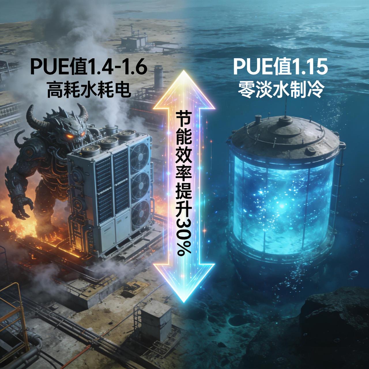 但在海底,一切都变了。常年15℃的海水,是纯天然的超级空调!全程不耗一滴淡水,直接把PUE值碾压到1.15以下,意味着节能效率直接提升了超过30%!一年省电6100万度,相当于300万棵树一年的固碳量,这环保效益真的绝了!