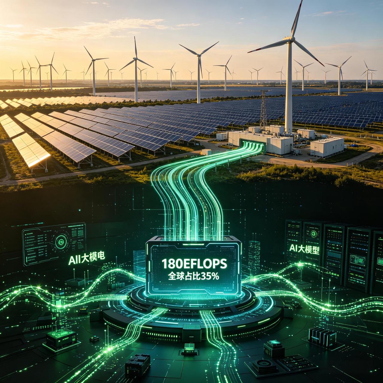 就说电力吧,马斯克都承认2026年中国发电量会是美国的3倍,而且70%是太阳能!绿电多了,算力就有底气啊~现在中国算力规模超180EFLOPS,占全球35%,比美欧加起来还多,这不就是AI规模化的根基嘛~