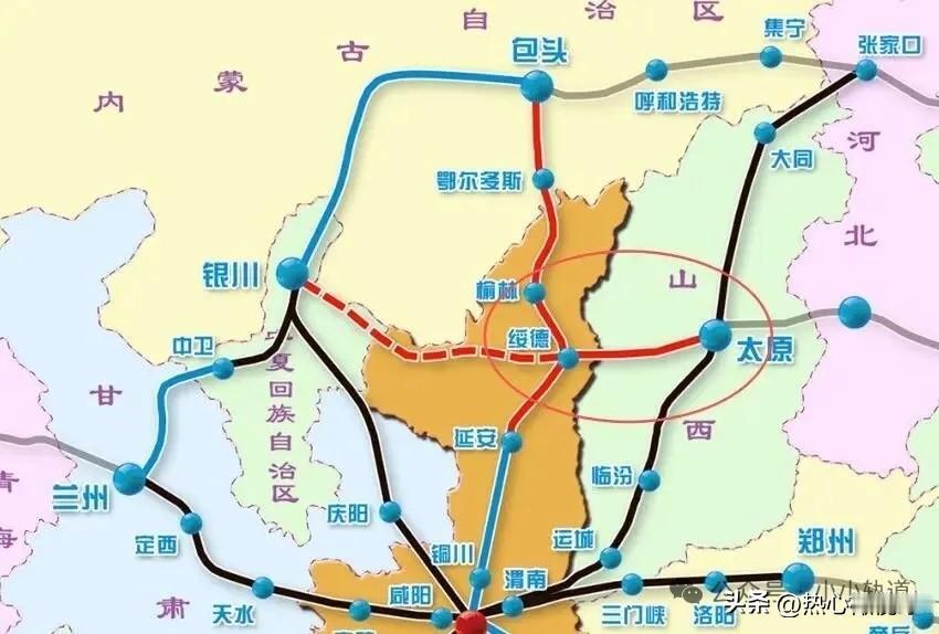 太绥高铁作为国家“八纵八横”高铁网中青银通道的重要组成部分,太绥高铁设计时速350公里,计划工期4.5年,未来将直接联通太原、吕梁和绥德,成为华北通往西北的快速走廊。