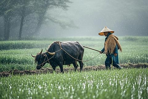 蓑衣短褐伴牛耕。