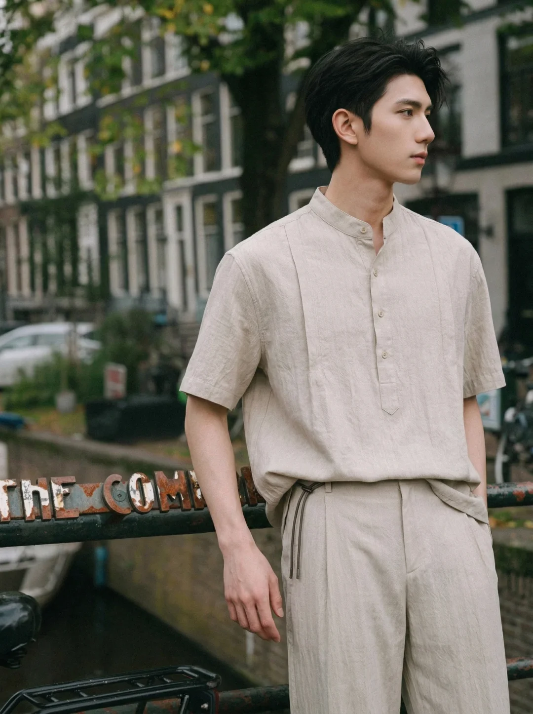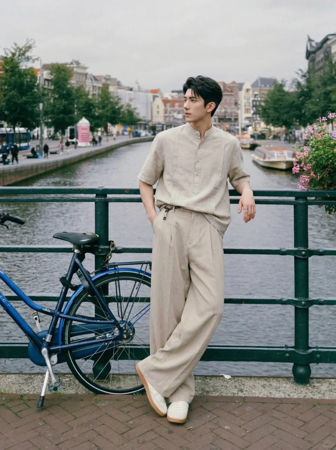 一直觉得夏天男生穿得清爽不油腻,才是最高级的性感。这次入手的这套亚麻套装,直接把「书卷气 + 松弛感」焊在身上,不管是日常 citywalk 还是轻商务场合,都自带一种低调的贵气感。