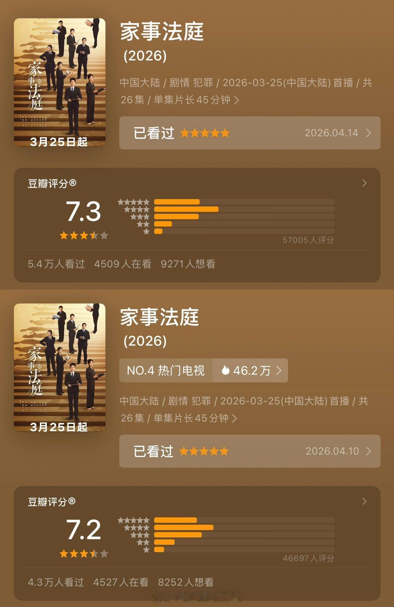 家事法庭 cvb集均3.052%!法治题材CVB历史冠军,豆瓣评分也涨了,口碑剧