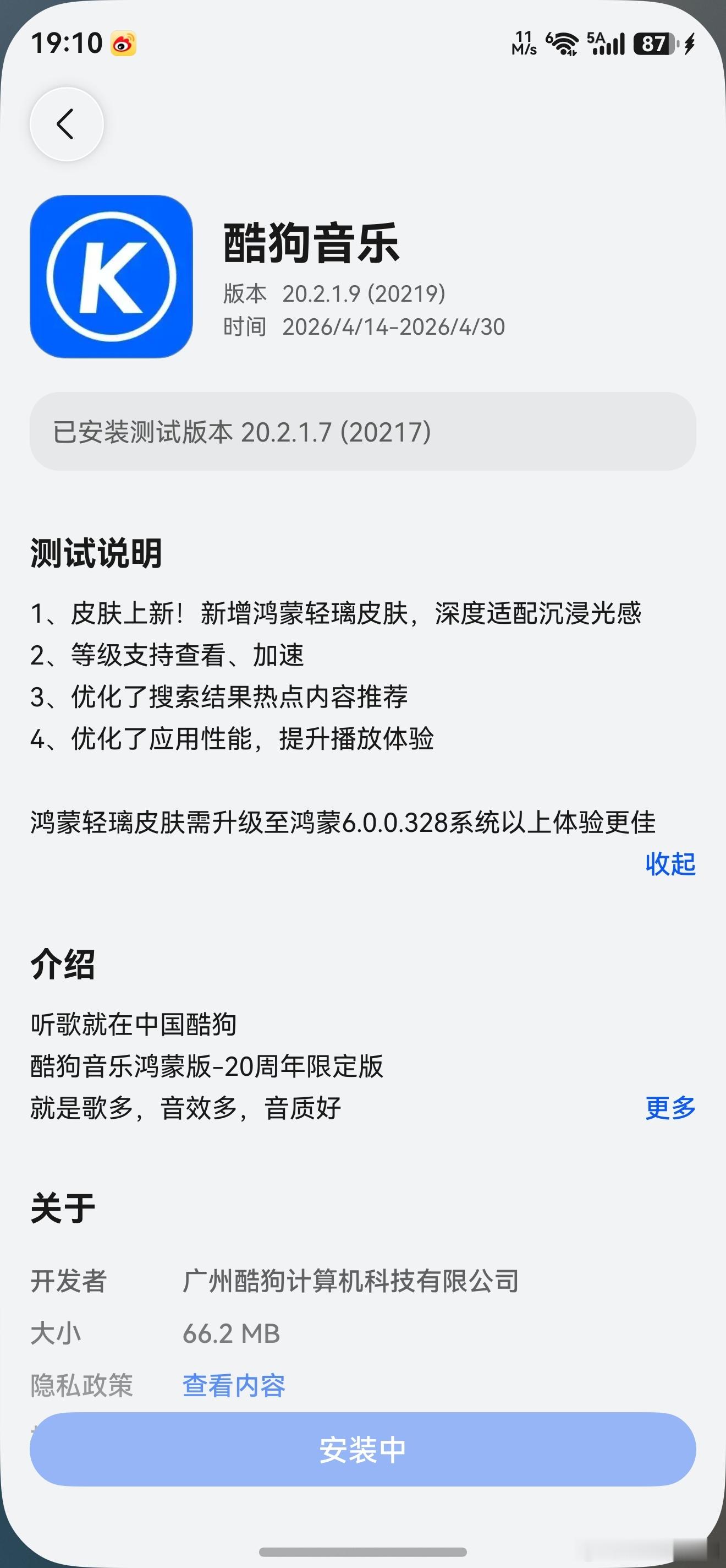 酷狗音乐鸿蒙版也尝鲜鸿蒙玻璃的光效质感了,QQ音乐也已支持。这波相当领先!鸿蒙越