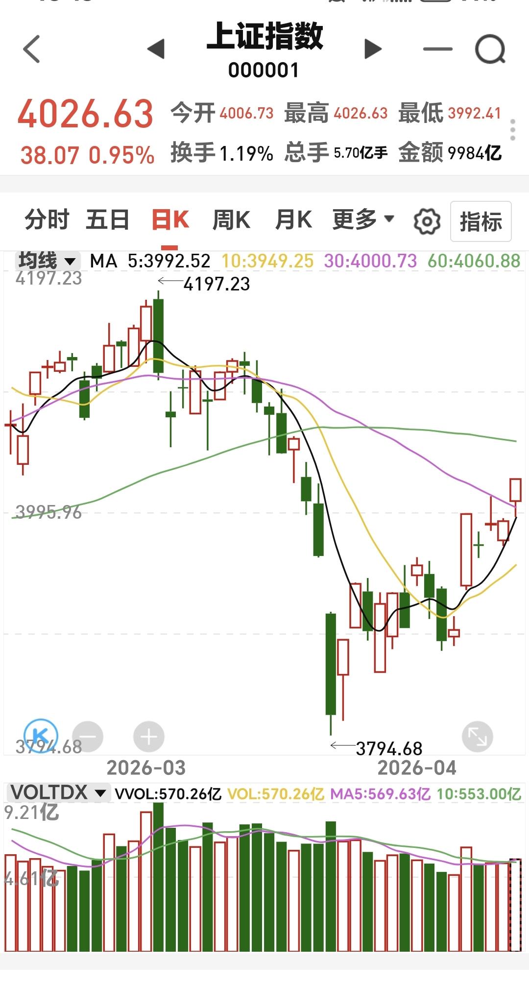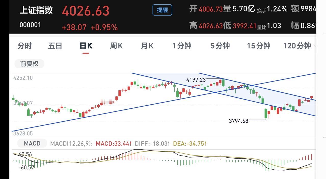 明天主要观察的点位是4043点,这是强反弹的标志点位,如果能够站稳到4043点以上,反转的可能性会进一步加强,还是要观察成交量,成交量不能继续有效放大,我就对这个上涨不信任,你觉得现在的上涨基础是不是有点虚?