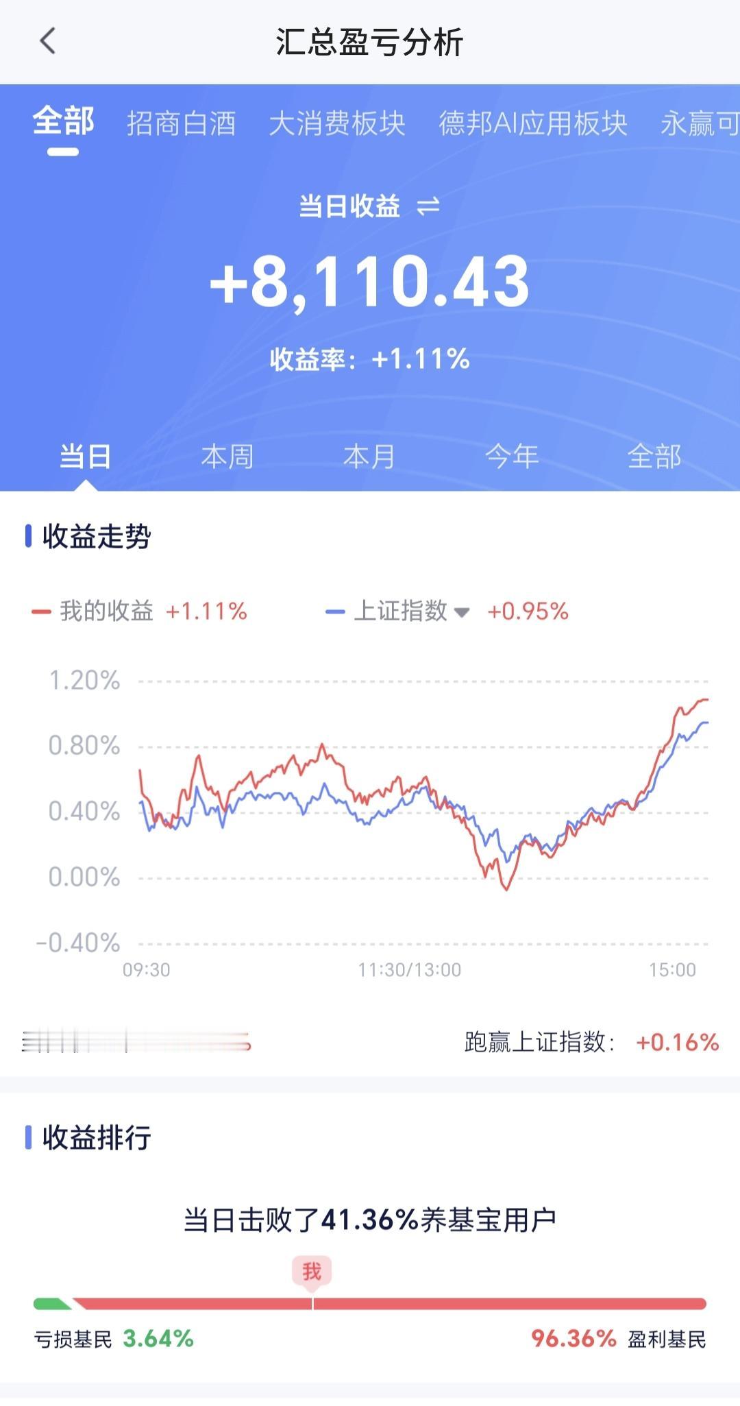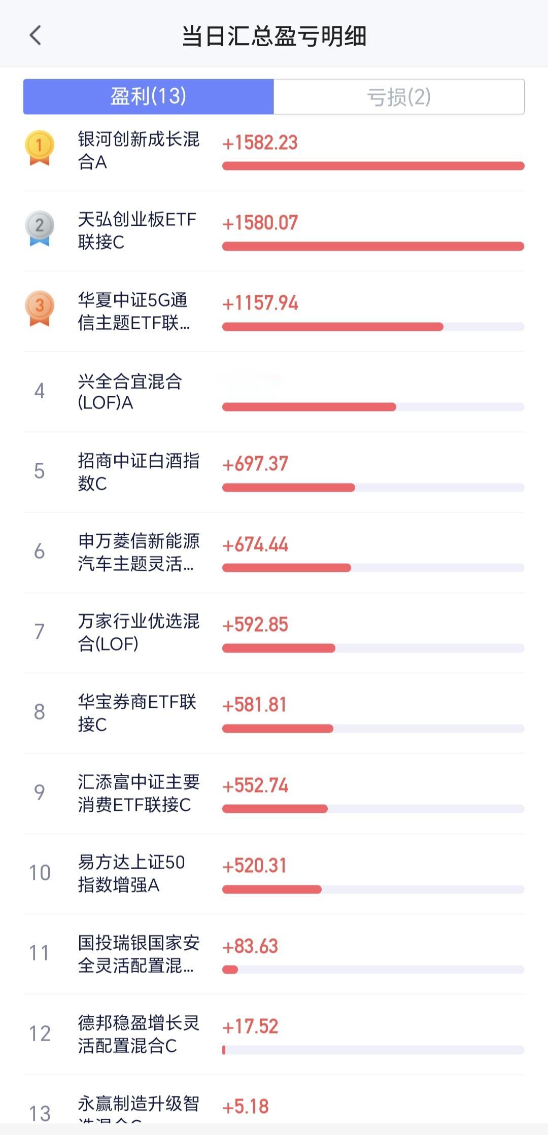 持有基金估值上涨了8110元,盈利金额最大的三个板块是:芯片半导体板块,创业板指,5G板块,亏损的只有创新药板块和海外互联网板块。