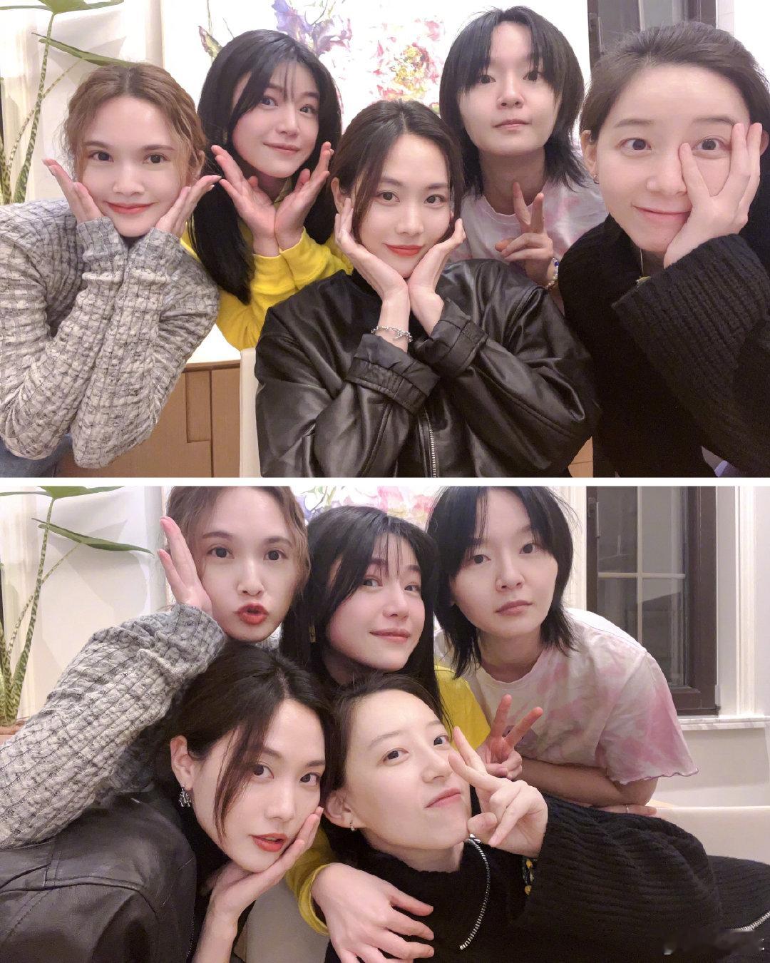 4月14日,陈妍希晒合照,并配文:“姐妹欢聚,很是开心呀”。陈妍希、周笔畅、