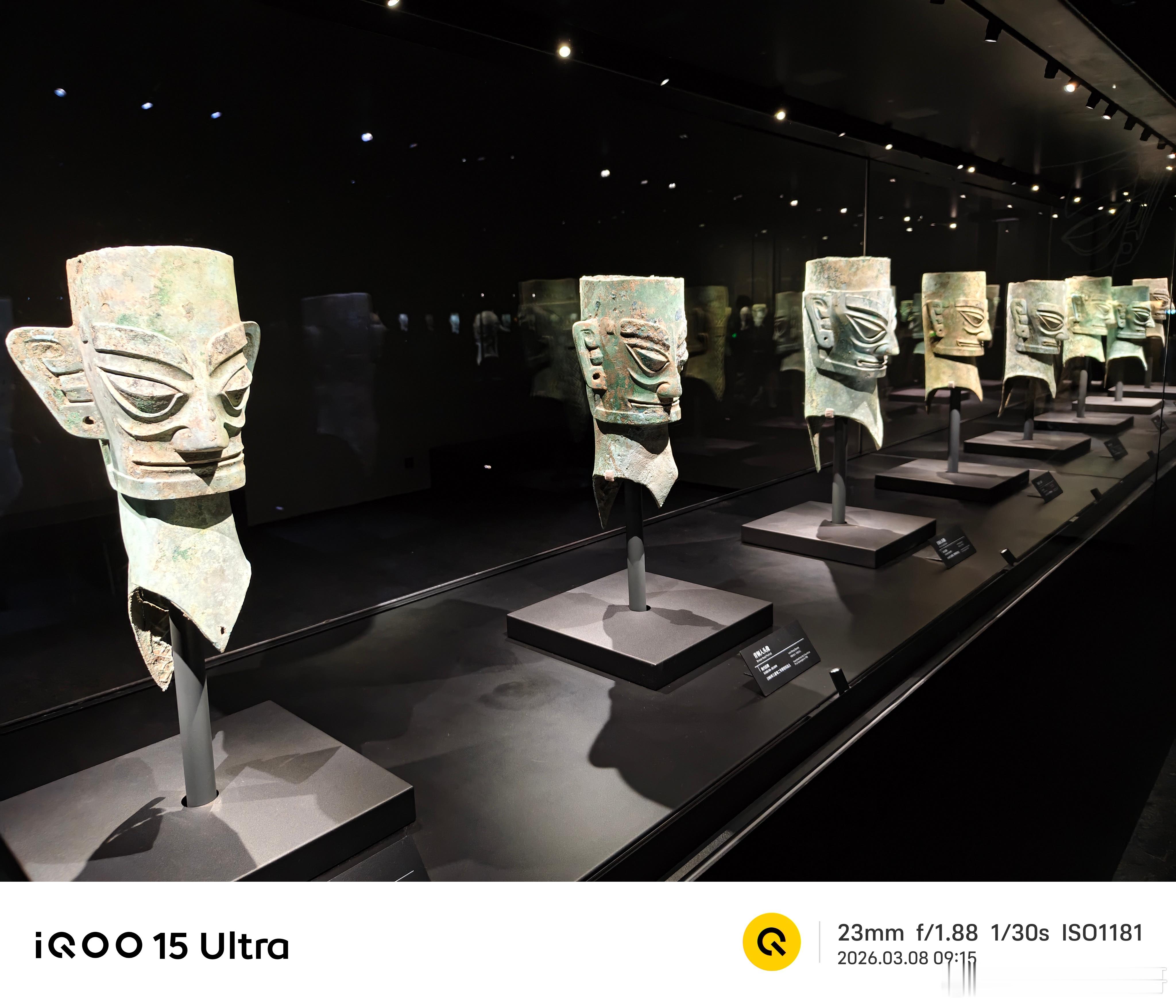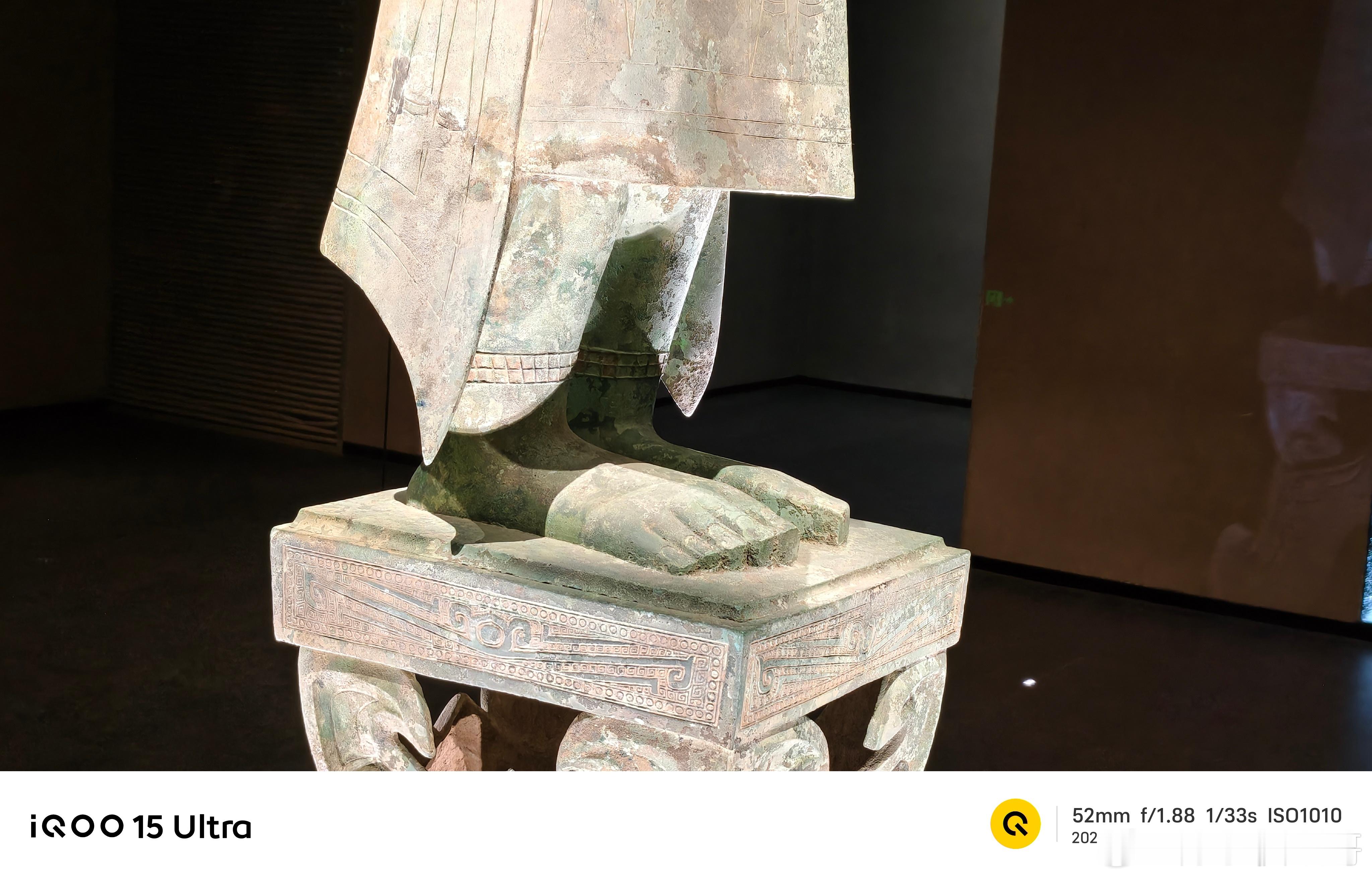 iQOO 七周年的时候,我带着他逛了三星堆博物馆拍文物太好用,暗光环境不发糊,玻璃反光全压住,青铜器上面的纹理细节清清楚楚!