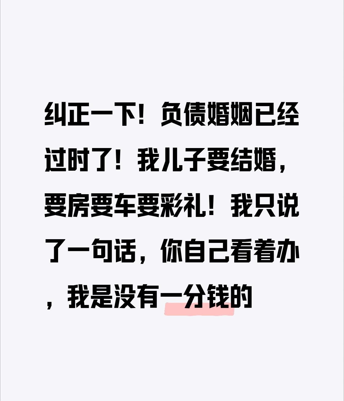 可现实中,很多家庭因为彩礼苦不堪言。一些农村家庭人均年收入才1.8万,彩礼却要18 - 19万。这种风气还扭曲了婚姻价值观,男人被彩礼压得没了底气,女人把彩礼当炫耀资本。负债婚姻真的过时了,我儿子结婚,我就表明没一分钱,结婚不该是让家庭负债的事。