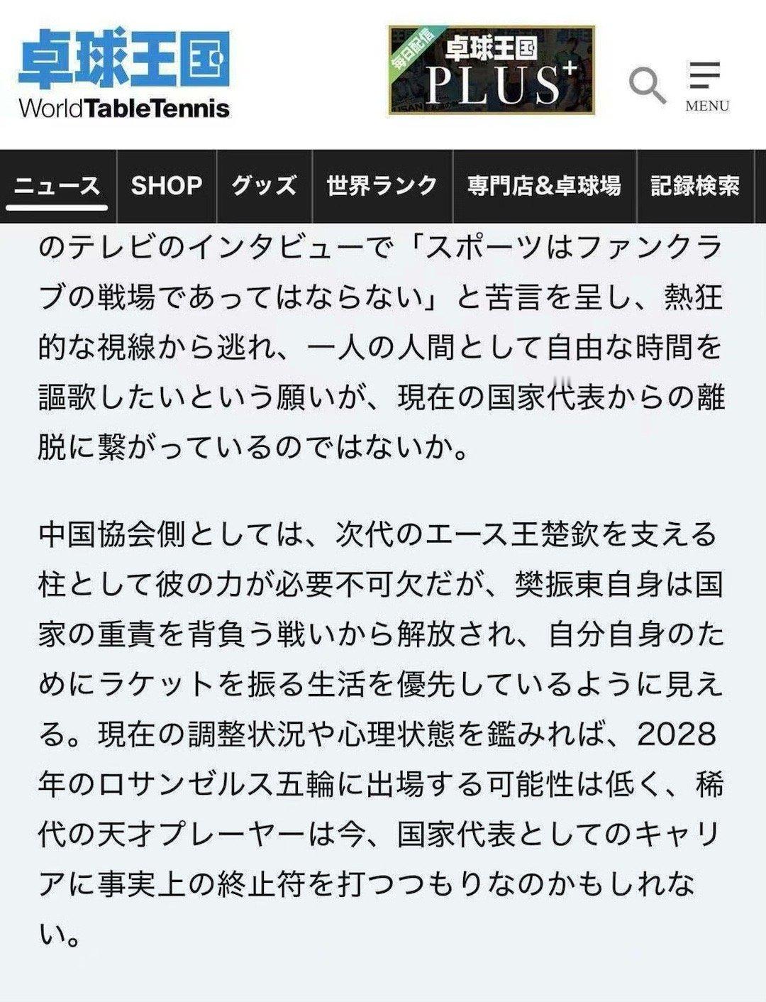 作为日本乒乓球界最具影响力的专业媒体,《卓球王国》在最新深度报道中,对樊振东给出了史无前例的超高评价: