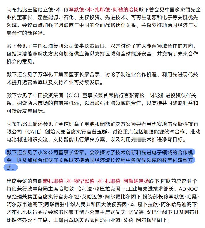 阿联酋阿布扎比王储访华之前看过不少网友评论,阿联酋有不少用户喜欢小米汽车,特别是