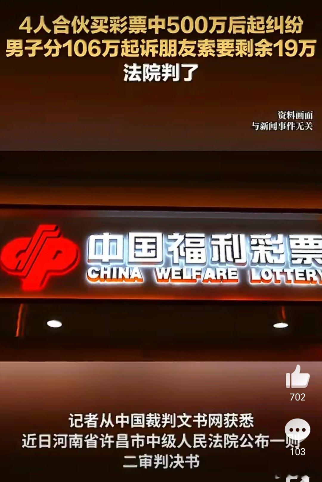 4人合伙买彩票中500万后起纠纷这两天彩票的新闻越来越多了,又这让我想起了网友的