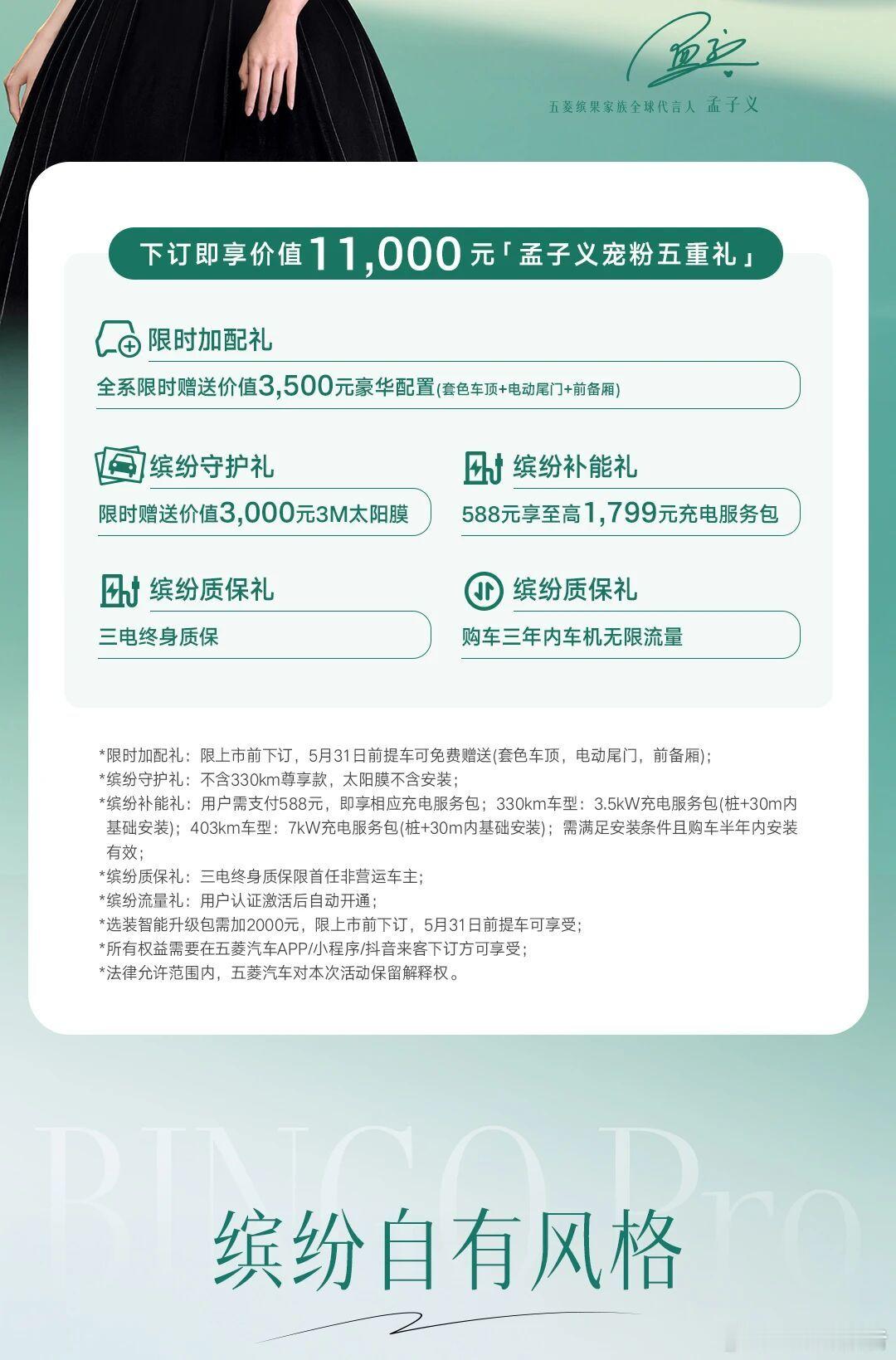 内饰采用五座布局,配备双10.25英寸联屏与Ling OS灵语车机,支持AI语音与远程控车。动力上搭载65kW前置电机,最高车速130km/h,提供330km、403km两种CLTC续航版本,全系支持直流快充与3.3kW外放电,标配ESC、倒车影像、上坡辅助等安全配置,定位精致纯电代步车。缤果pro孟子义颜选缤果Pro有多懂女生五菱缤果Pro