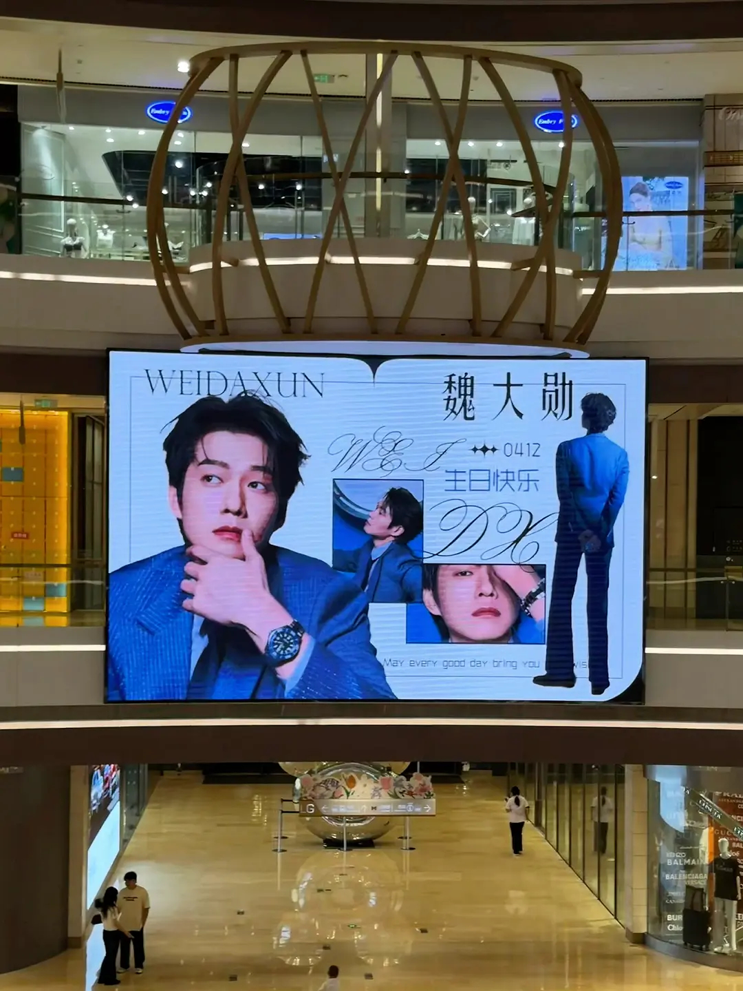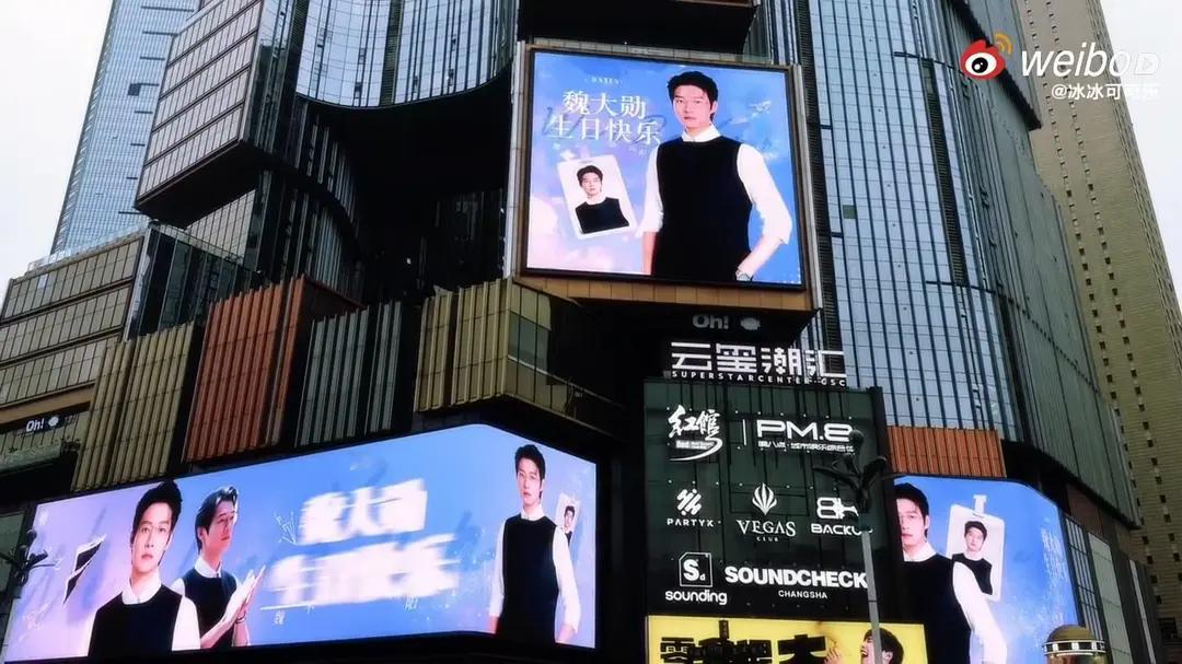 今年魏大勋生日应援很震撼,很多路人路过停下来和大屏拍照,看着都做的很帅很用心,粉丝爱意满满魏大勋