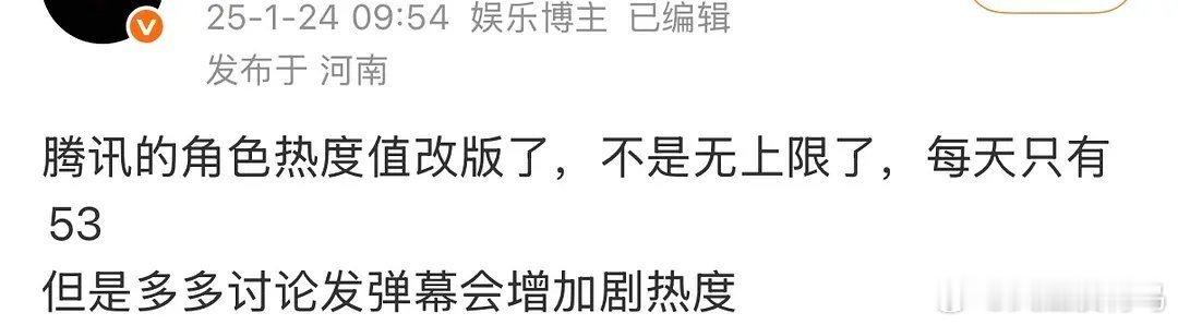因为最近俾县在争论腾讯角色氪金这个事 做个澄清,腾讯视频角色热度改版前免费无上限可免费可氪金25年1.1日改版 每天最多获取50+热度 其余靠氪金提升