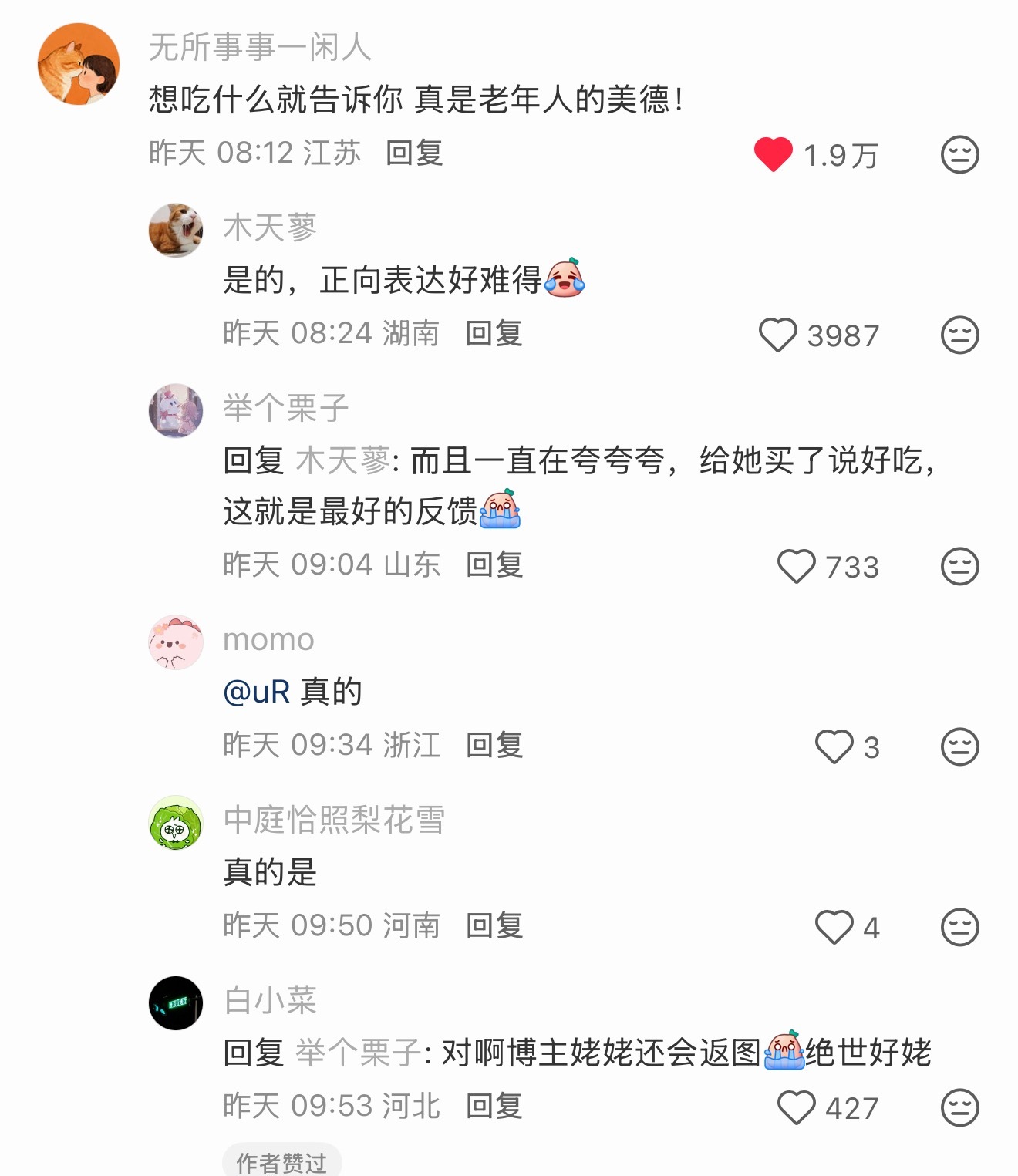 实在赞同热评!会正向表达的老年人太好了,想吃什么就告诉你!实在是一大美德啊。懂的都懂了