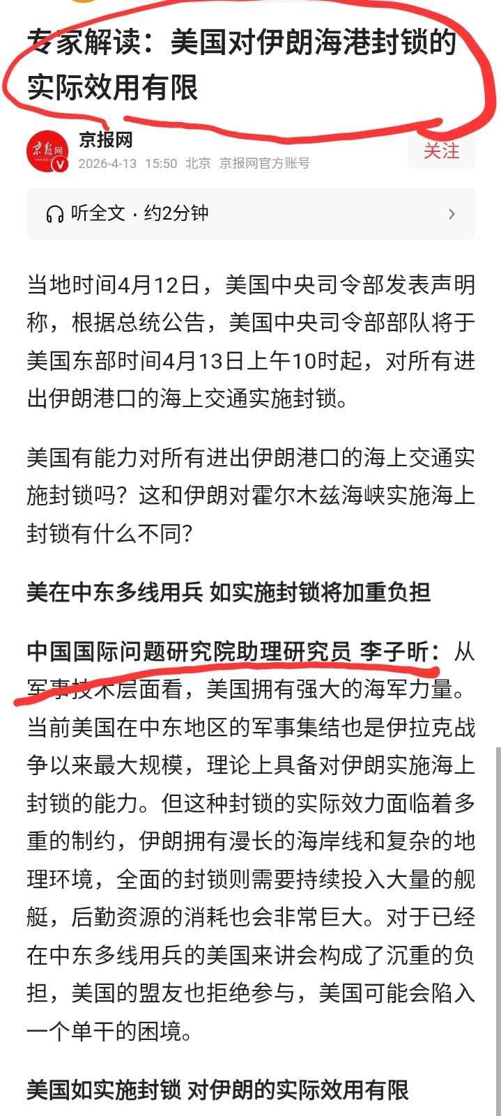 美国蛮横无理地封锁阿曼湾,秧4新聘请的革命专家李子昕(秧4还是比较善于听取群众呼声的,很少请李莉和杜文龙)表示:美国对伊朗海港实施的封锁,实际成效有限!实际上,最着急的反而是我们!所以伊朗没必要着急,预计这会倒逼伊朗大力拓展陆路贸易,说不定还会让伊朗经济变得更加强大。