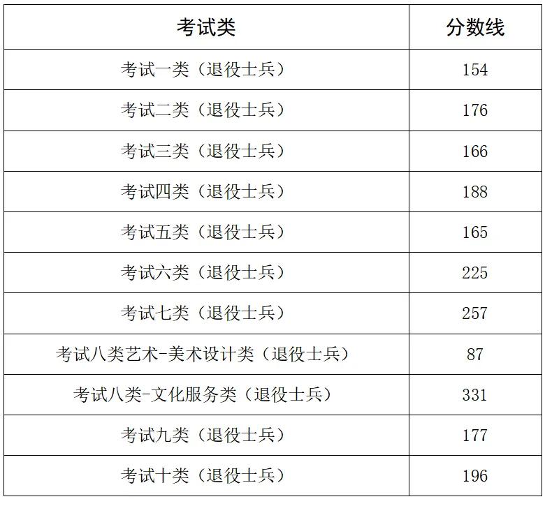 面向退役士兵各考试类录取控制分数线(图三)