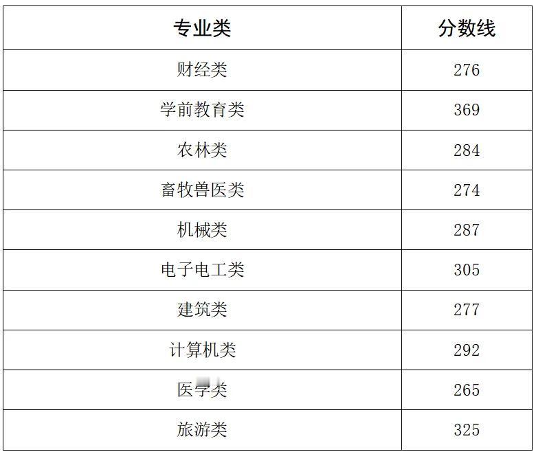 面向中职毕业生各专业类录取控制分数线(图二)
