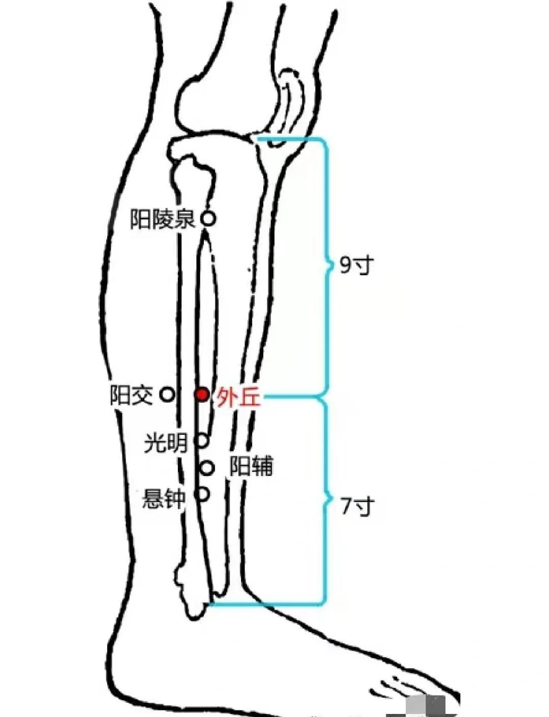 外丘穴是足少阳胆经的“郄穴”。在中医理论中,郄穴常用于调理急性、疼痛性问题。它的主要作用有两方面: