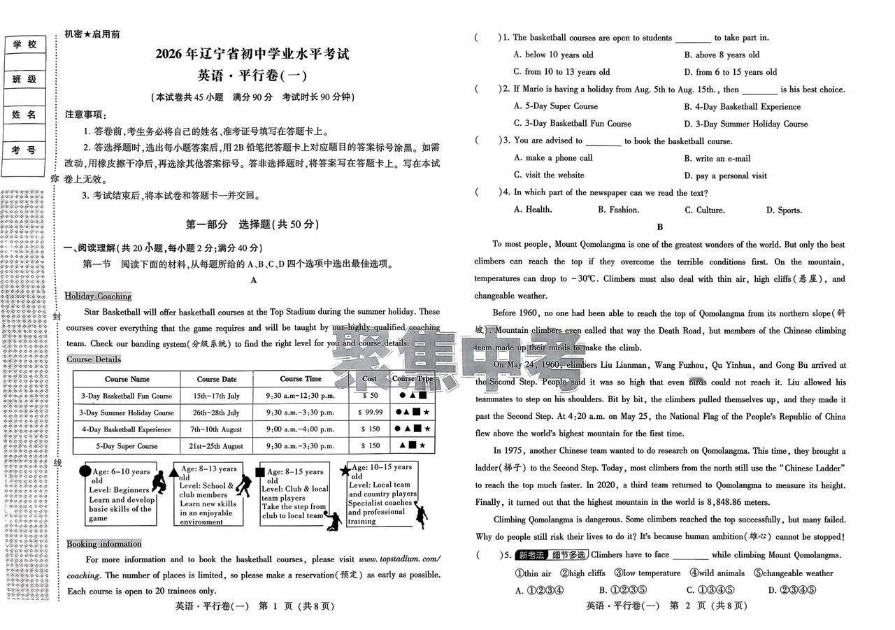 2026年中考英语《预测提分卷》练完,再提升二十分那都是小事儿