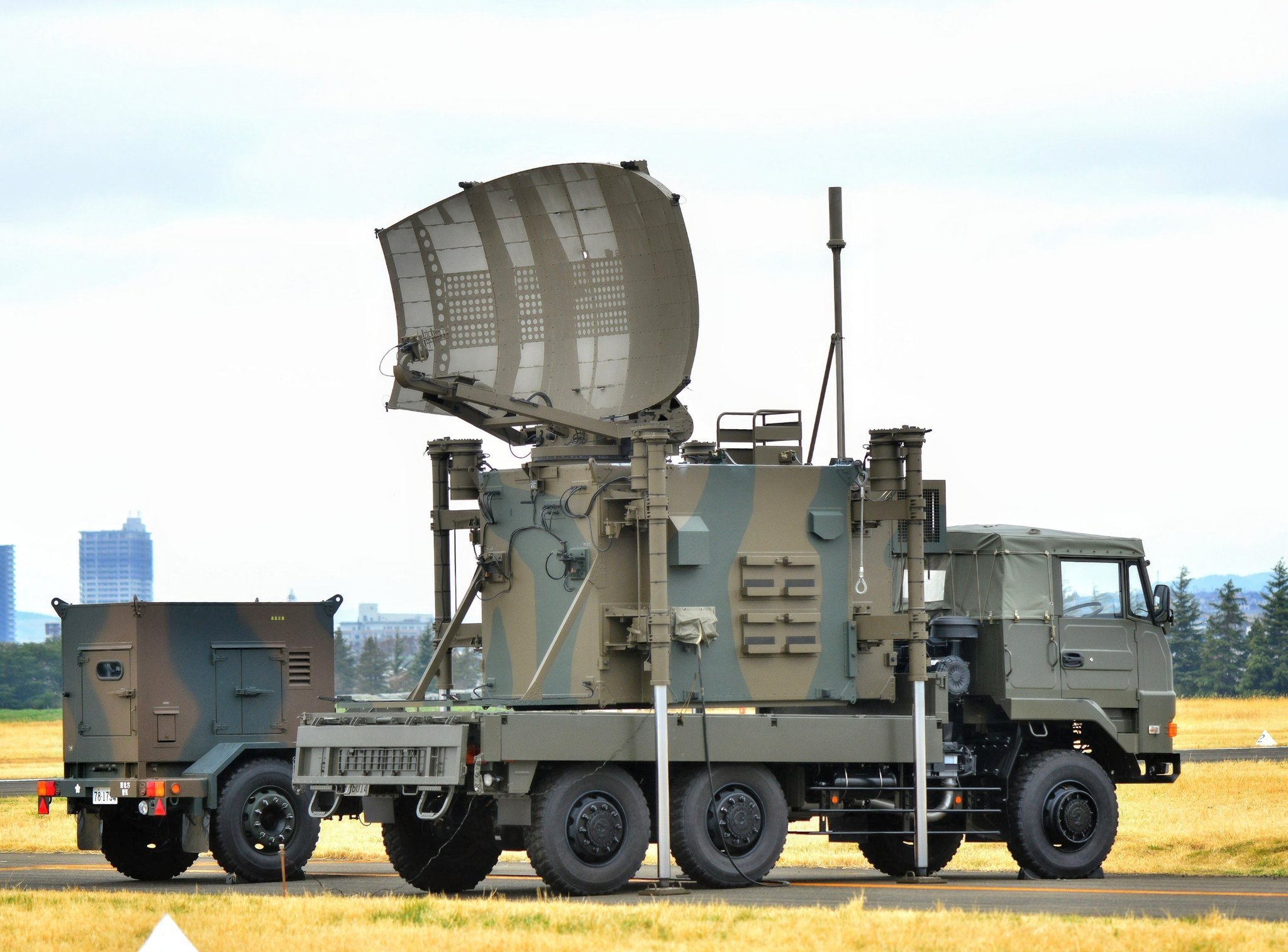 每天认识一件兵器 日本陆上自卫队 JTPS-P14型机动放空雷达该雷达于2020年以1亿美元价格出口至菲律宾空军,成为日本军事装备出口的首个案例。该型号雷达的最大特点是,其稳定支架并非从车体延伸,而是直接从雷达装置本体伸出。