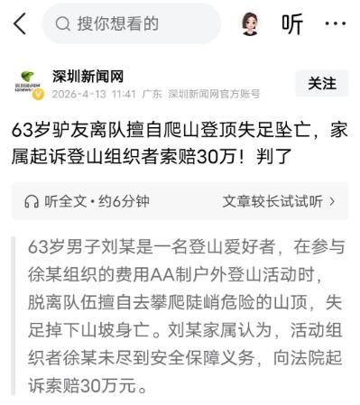 有人觉得组织者委屈,也有人认为家属的诉求合情合理,双方的分歧从未停止。男子的意外,是自身的疏忽,也是一场无法挽回的悲剧。这场看似简单的登山纠纷,也给所有户外爱好者和活动组织者,敲响了安全警钟。