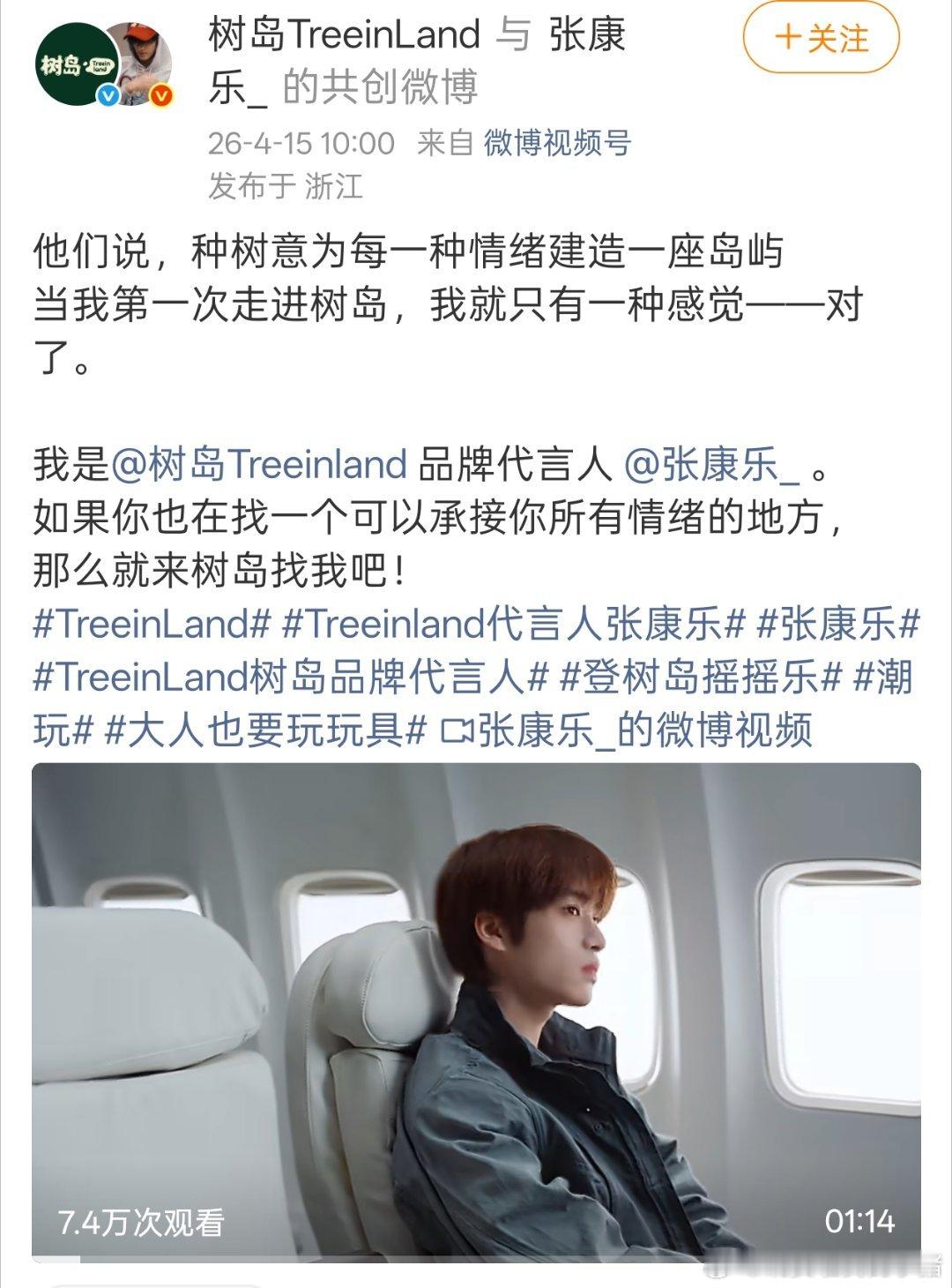 张康乐树岛品牌代言人 官宣🎊🎊
