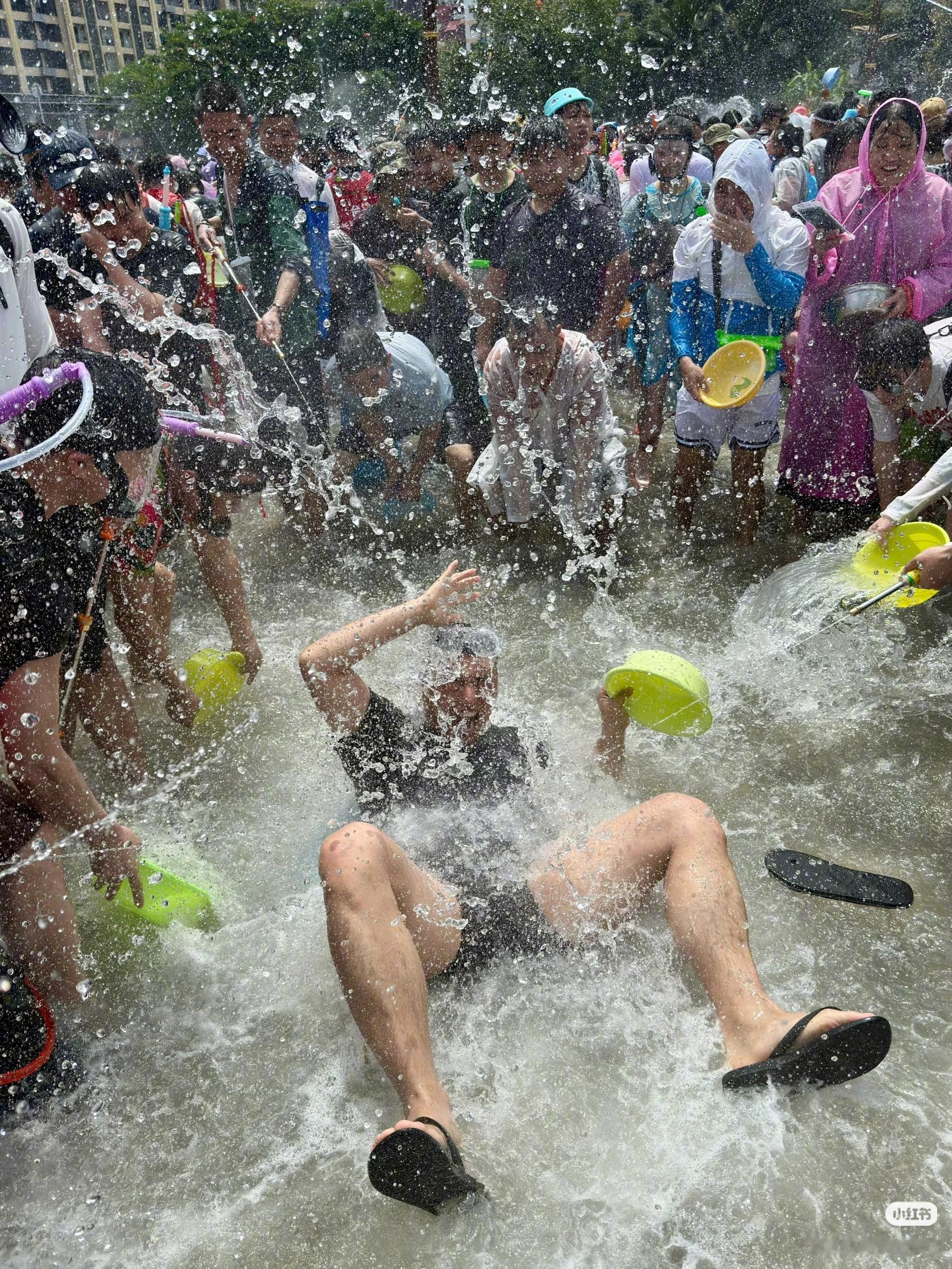 云南泼水节车前喷水小鸡袭击路人 泼水节的快乐,彻底具象化了。去年四月去西双版纳拍非遗,刚好也是泼水节的时候,印象深刻。沉浸在泼水节的每个人,都很有松弛感,释放着久违的笑容与纯净的天性。(图片来自网络)