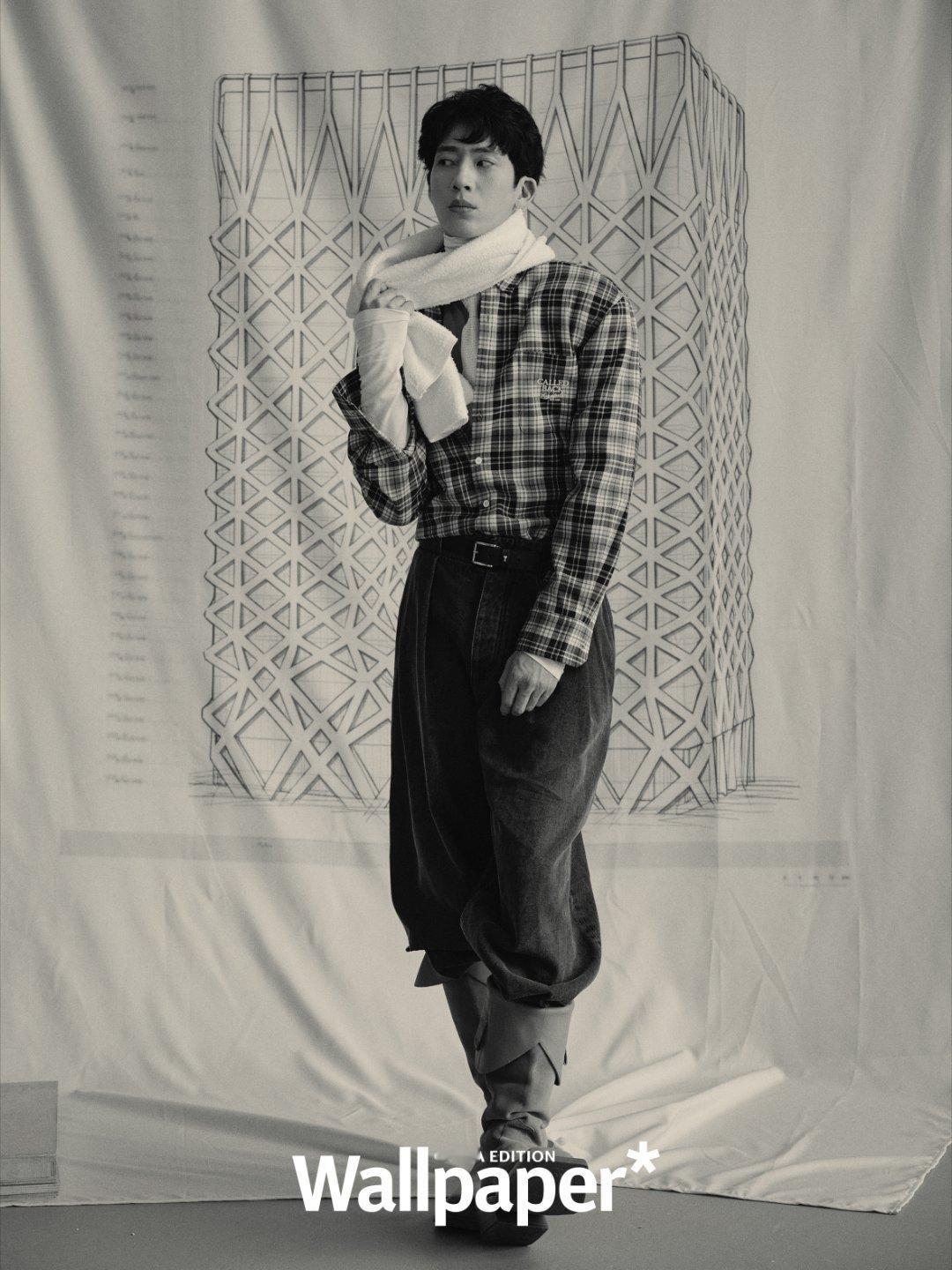 井柏然Wallpaper中文版四月刊封面井柏然解锁四月刊封面,于先锋建筑中演绎多