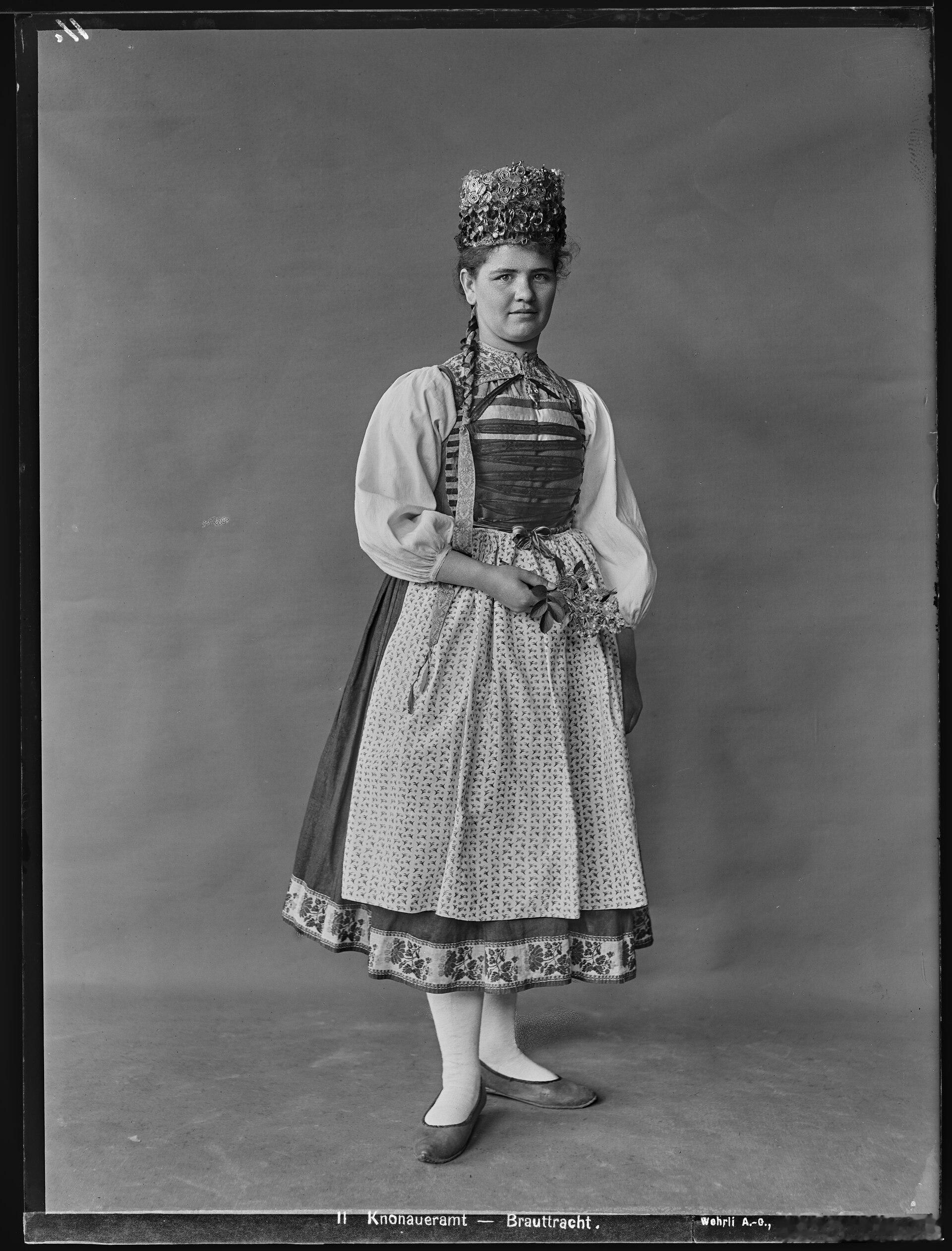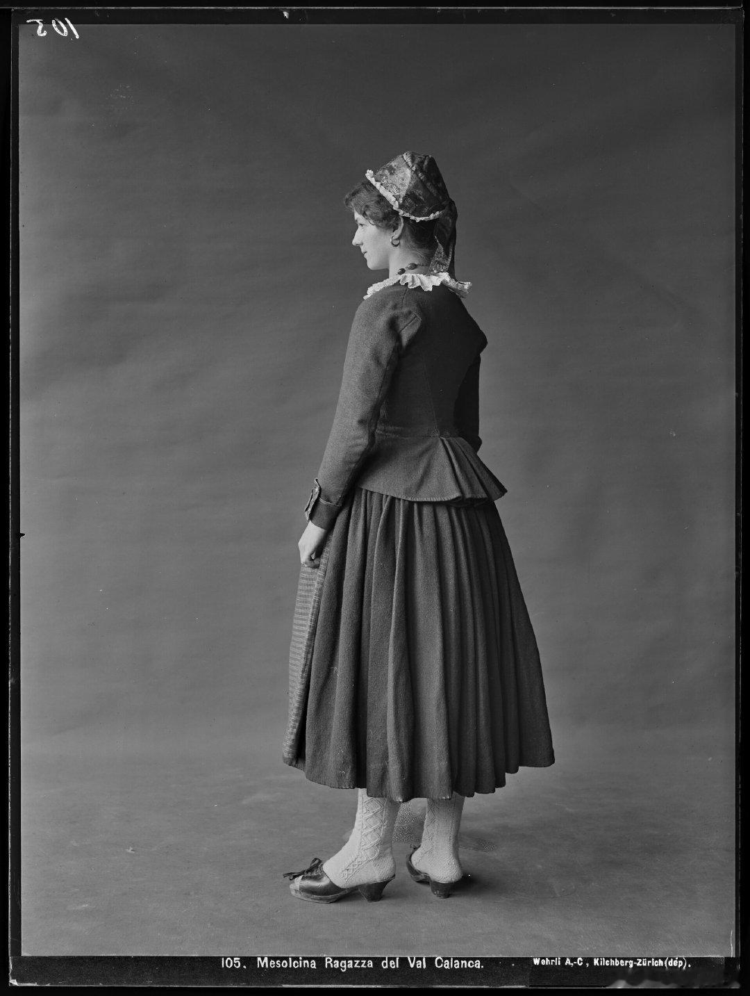 西洋历史文化鱼缸 历史人物 瑞士医生、登山家、摄影师汉斯·布伦(Hans Brun,1874-1946)1905年的作品《身穿格劳宾登州传统服饰的卡兰卡山谷女子》。瑞士国家图书馆收藏。