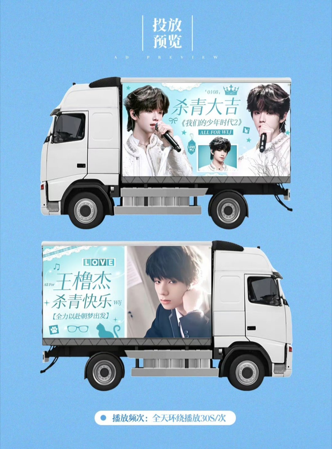 王橹杰第二波杀青应援,高4米长18米花墙 + 1米杀青蛋糕 + led应援车🩵🩵