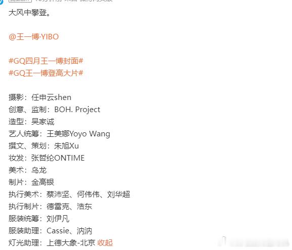 王一博杂志摄影任申云王一博制片金高银王一博杂志摄影任申云,王一博制片金高银,咱就说登高享受自由的一博的时尚大片,质感满分,拍出来了一博的少年感啊~