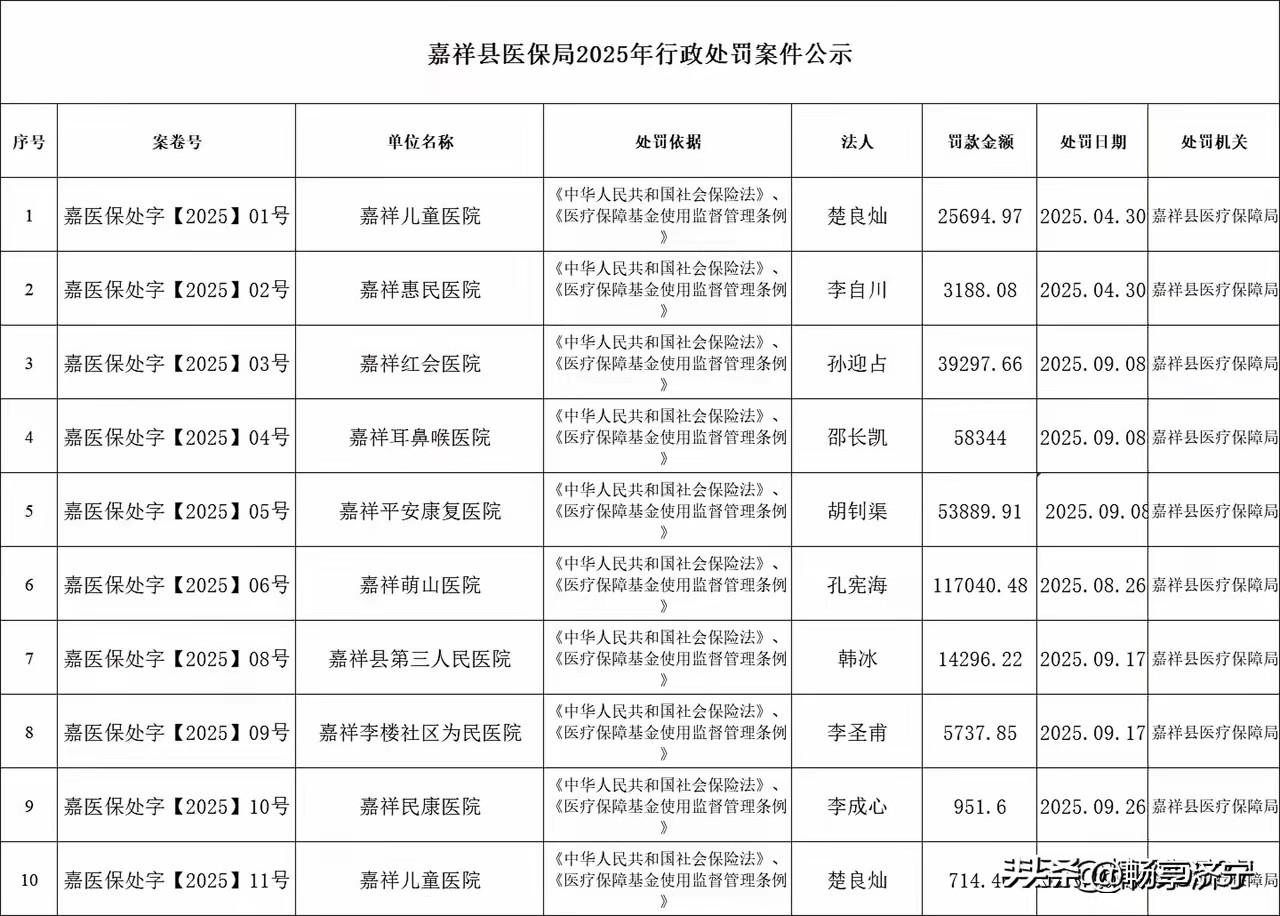 嘉祥又多家医院被处罚。。