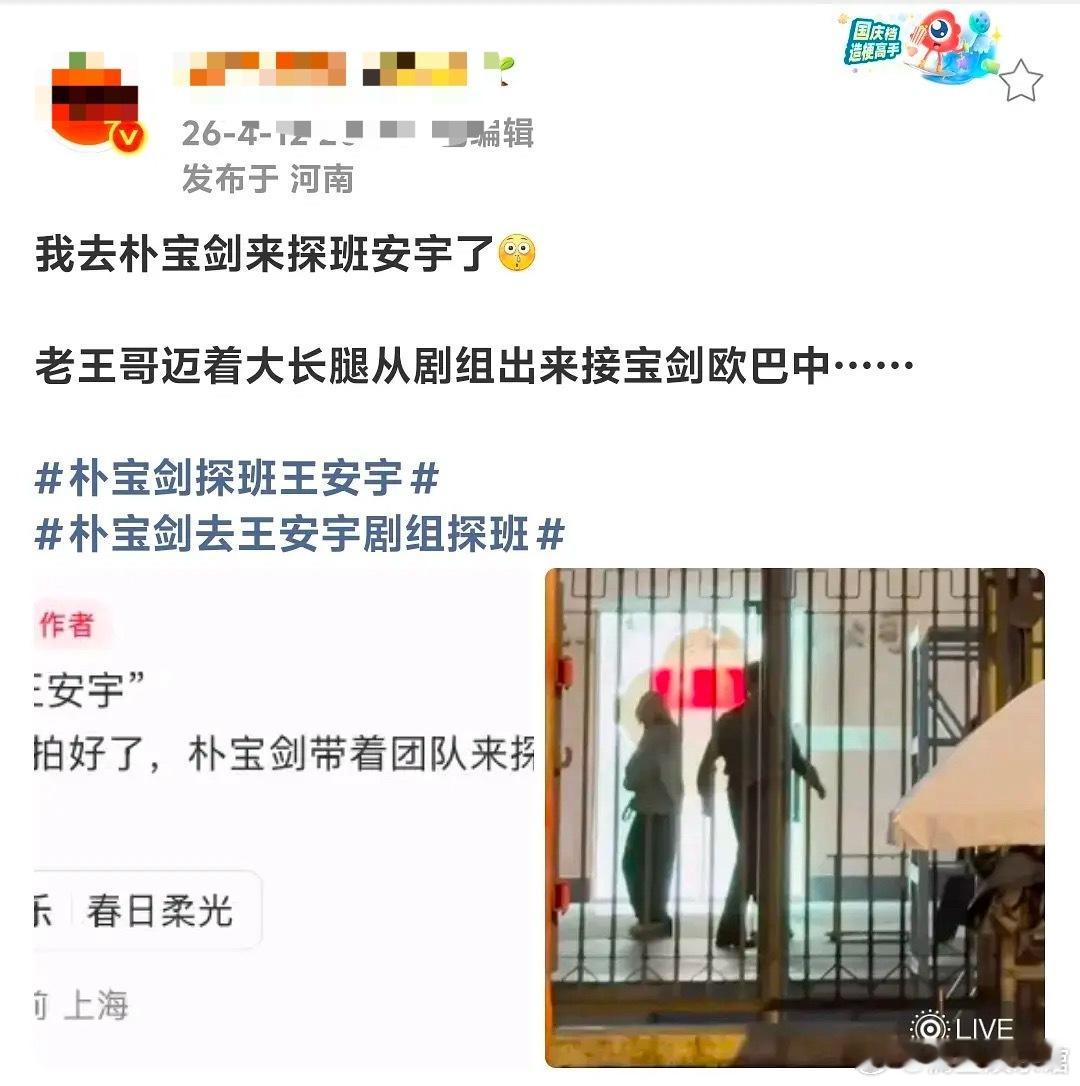朴宝剑探班王安宇,这两位什么时候关系这么好了