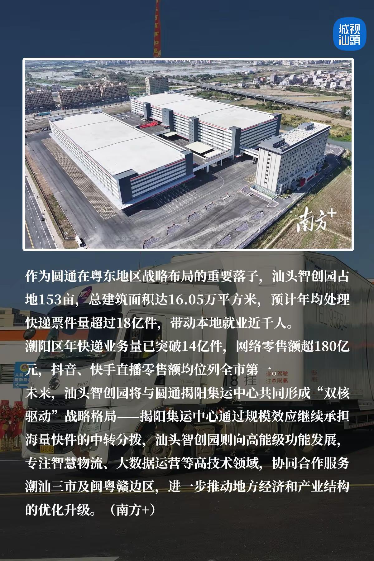 圆通速递汕头智创园在汕头潮阳贵屿正式投产。3月14日,圆通速递总投资约6亿元的在