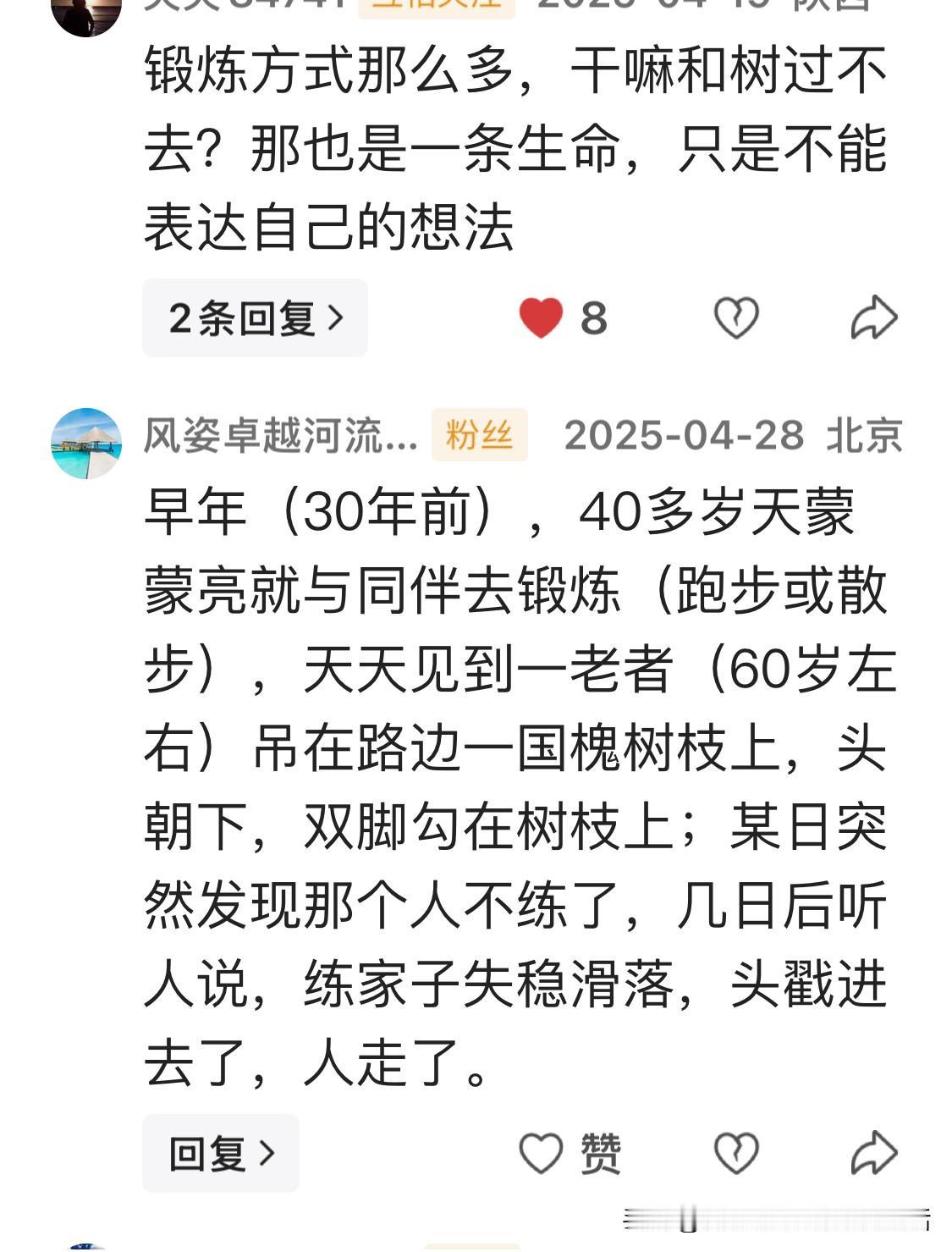 第二件事是去年在旅居地家门口,我借着门口的松树树枝拉伸腰部,折断了一段枯树枝,同样引起很多人的批评,直言我不懂得爱护树木。