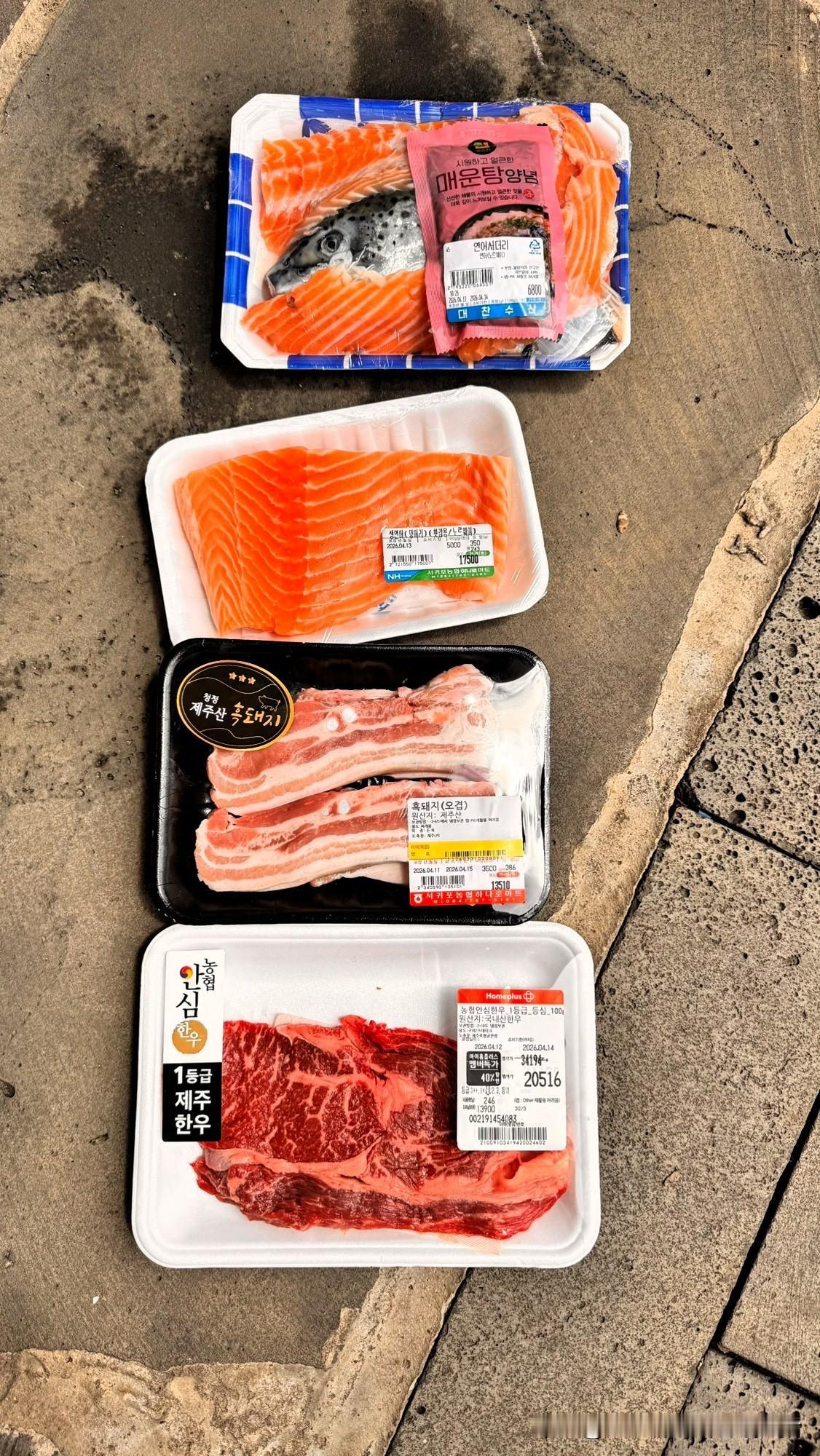 济州产一级草饲韩牛一般是十万多一公斤,挪威三文鱼生鱼片五万一公斤,济州产黑猪五花肉35000一公斤;