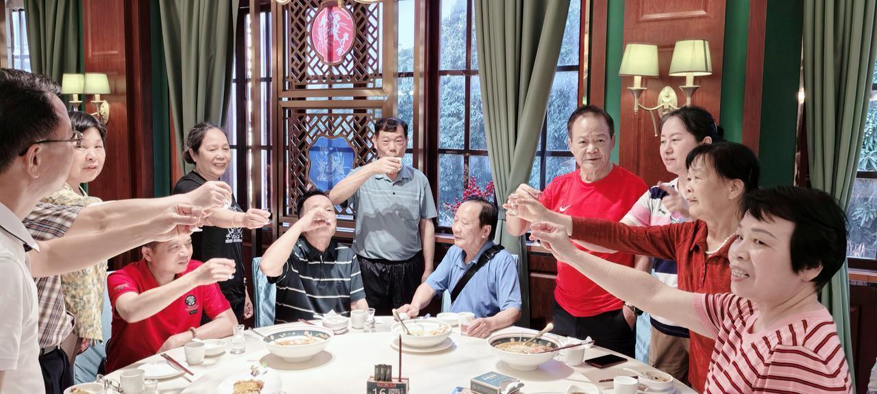 席间,一位同行的女老师拿出了一瓶珍藏12年的美酒——这是她2014年从台湾带回的56度台湾高粱酒,容量750毫升。历经岁月沉淀,酒液已然泛黄,入口浓烈却不刺喉,浓香醇厚中带着丝丝回甘,口感绝佳。同桌四位女老师浅尝辄止,这瓶珍酿大多被六位男老师尽兴分饮,推杯换盏间,旅途的疲惫也消散大半。