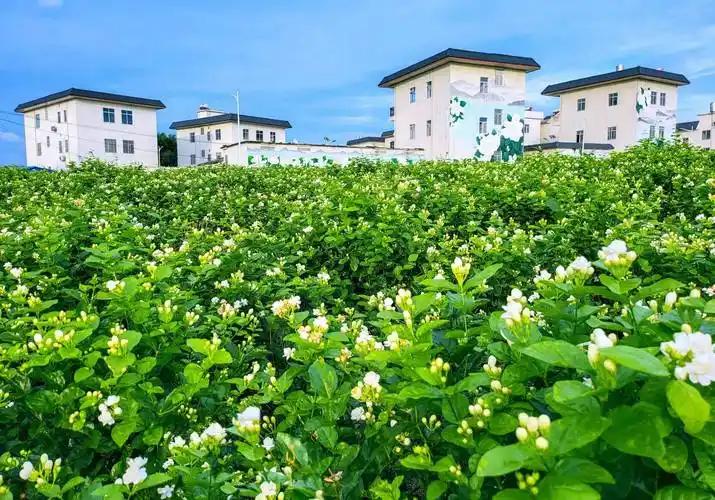 午餐过后,乘坐大巴前往横州万亩茉莉花园赏花、品茉莉花茶。一望无际的茉莉茶园里,大部分纯白茉莉已被花农采摘,只剩下星星点点的白花,依旧飘散着淡淡的清香。
