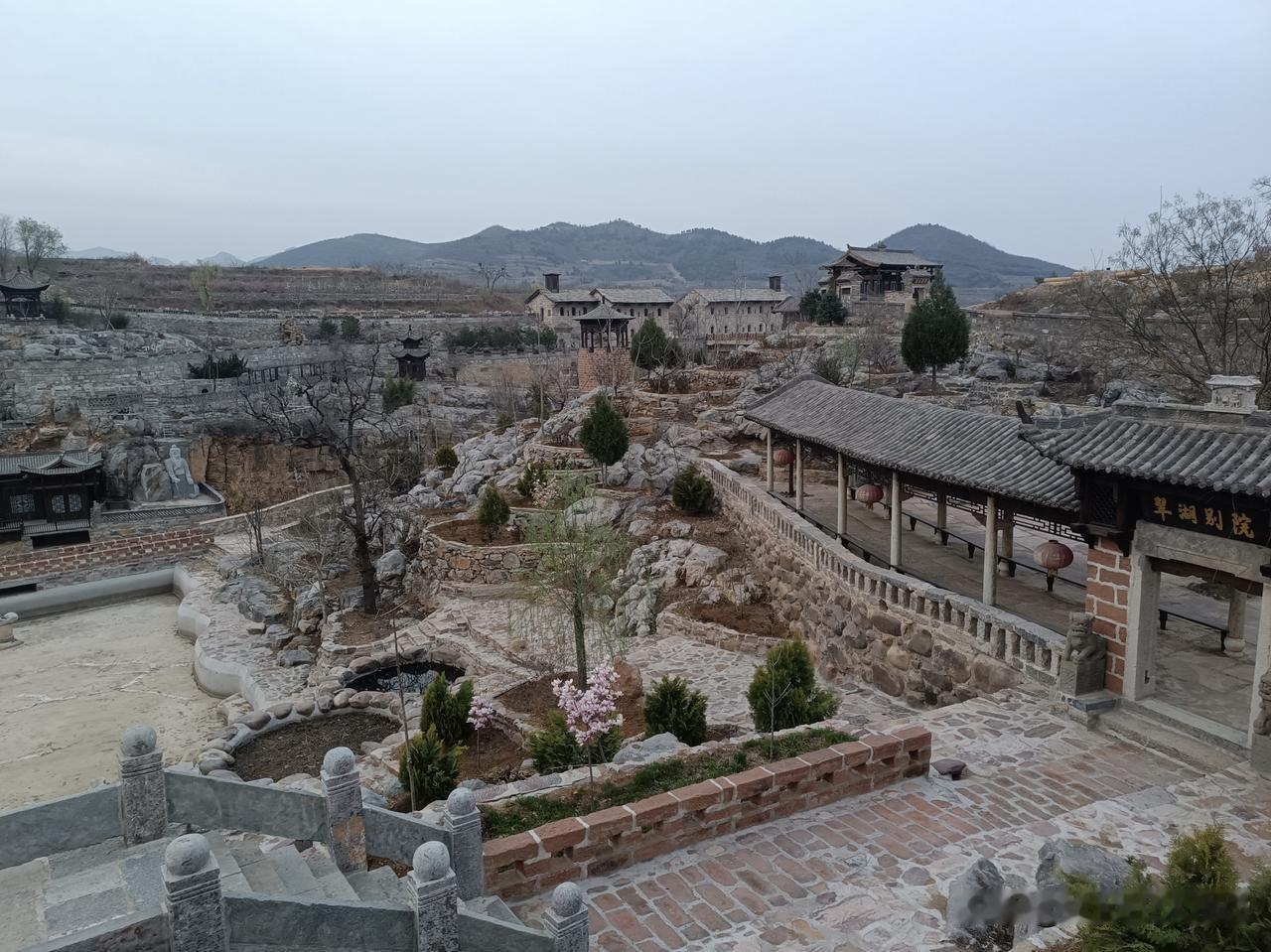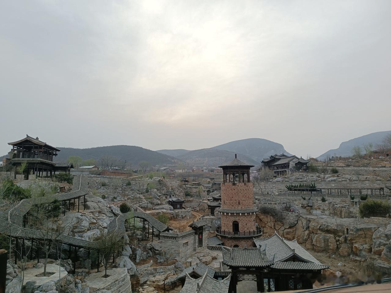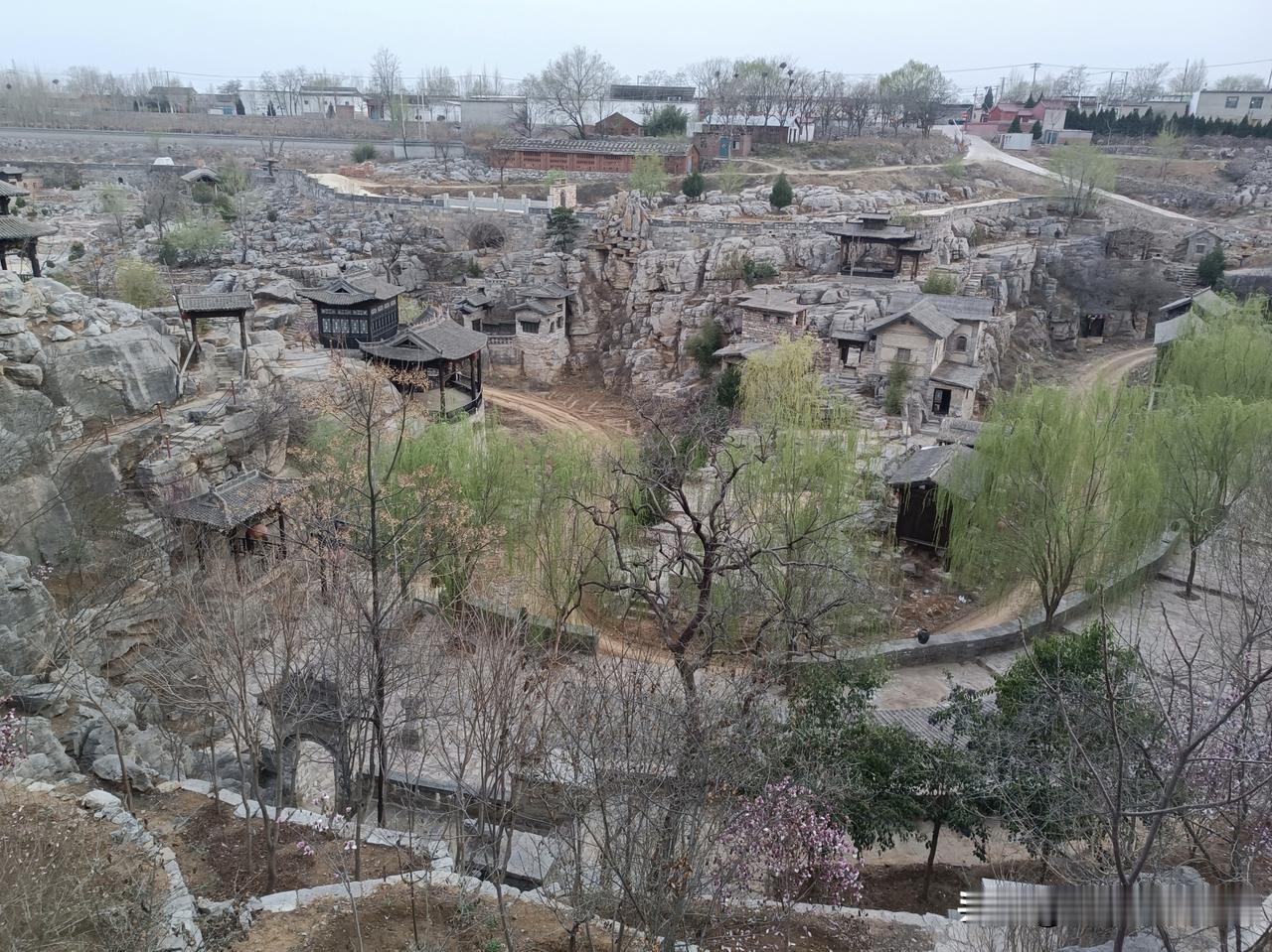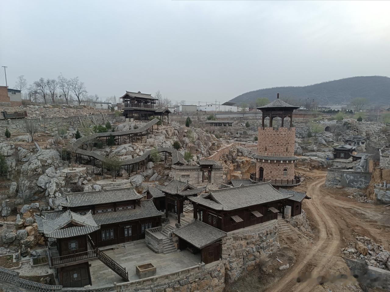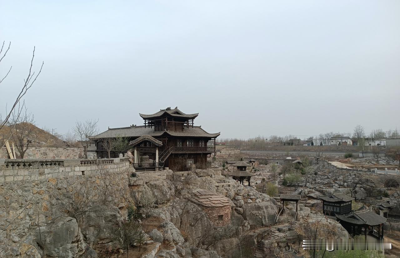 我较早关注这处家乡近处的安河河谷的自然地理之境。却无缘走近其中,直到有一次我得以围绕此处园林景观外围道路转一圈,俯瞰远望,欣赏古色古香的亭台楼阁。我想找到美好的词语来形容古村夕照:亭台楼阁,美轮美奂。曲径回廊,别有洞天。呈现在眼前的俨然一个设计精巧、奥妙无穷的盆景,每一处都可以添加更多的中国文化元素,每一个节点,都可以细细地揣摩。